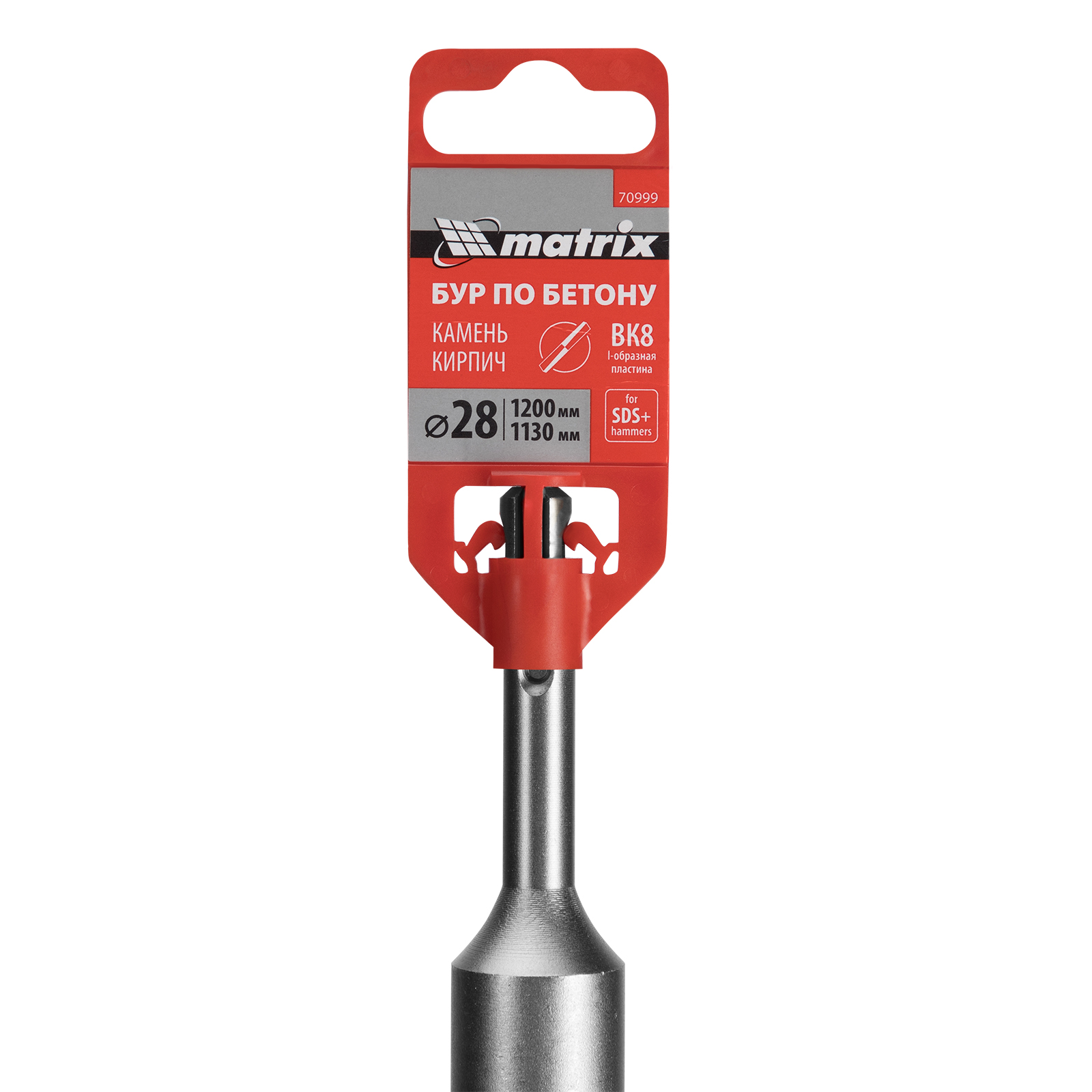 Бур по бетону Matrix 70999 длиной 1200 мм — оснастка для перфораторов с патроном SDS-plus, позволяющая получать отверстия диаметром 28 мм в бетоне, камне и кирпиче. Используется во время проведения строительных работ, эффективно решает поставленные задачи благодаря плоской режущей пластине из высокотвердого сплава карбида вольфрама ВК8 твердостью 80-90 HRA. Хвостовик SDS-plus позволяет быстро устанавливать бур и надежно его фиксирует.