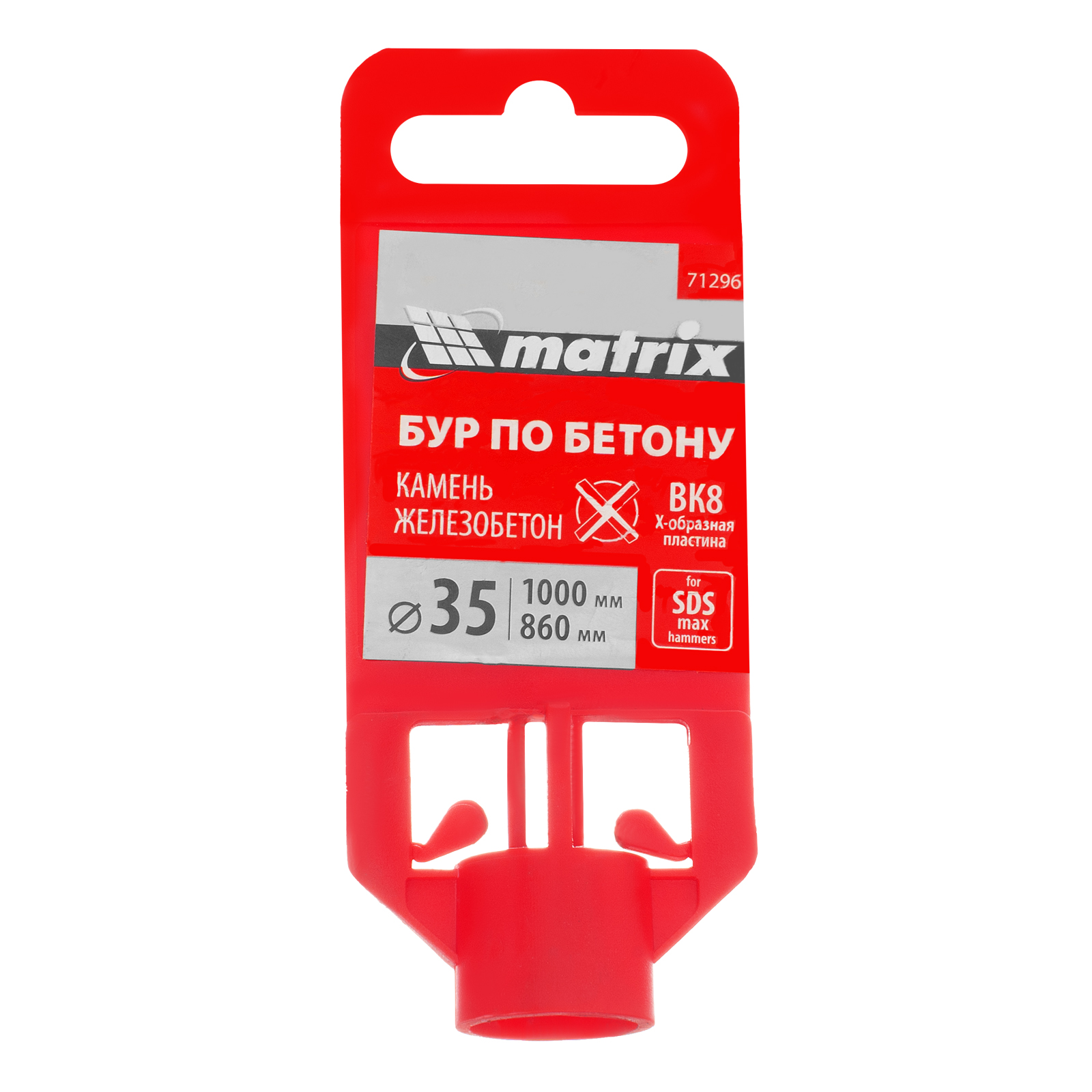Бур по бетону Matrix 71296 размером 35 х 1000 мм используется в качестве оснастки на тяжелых перфораторах с хвостовиком SDS MAX. Подходит для сверления глубоких отверстий в кирпиче и особо прочных материалах: армированном бетоне, природном и искусственном камне.