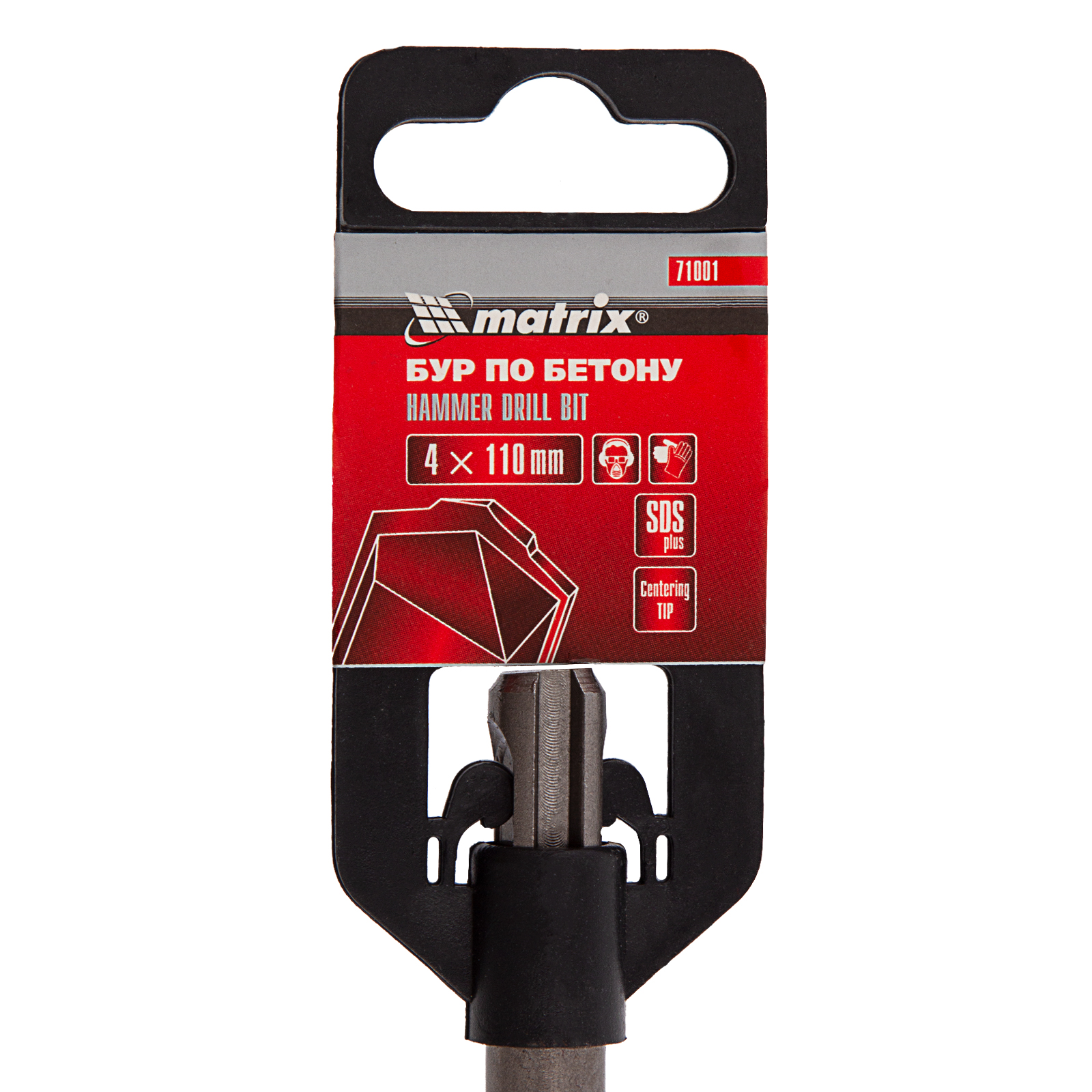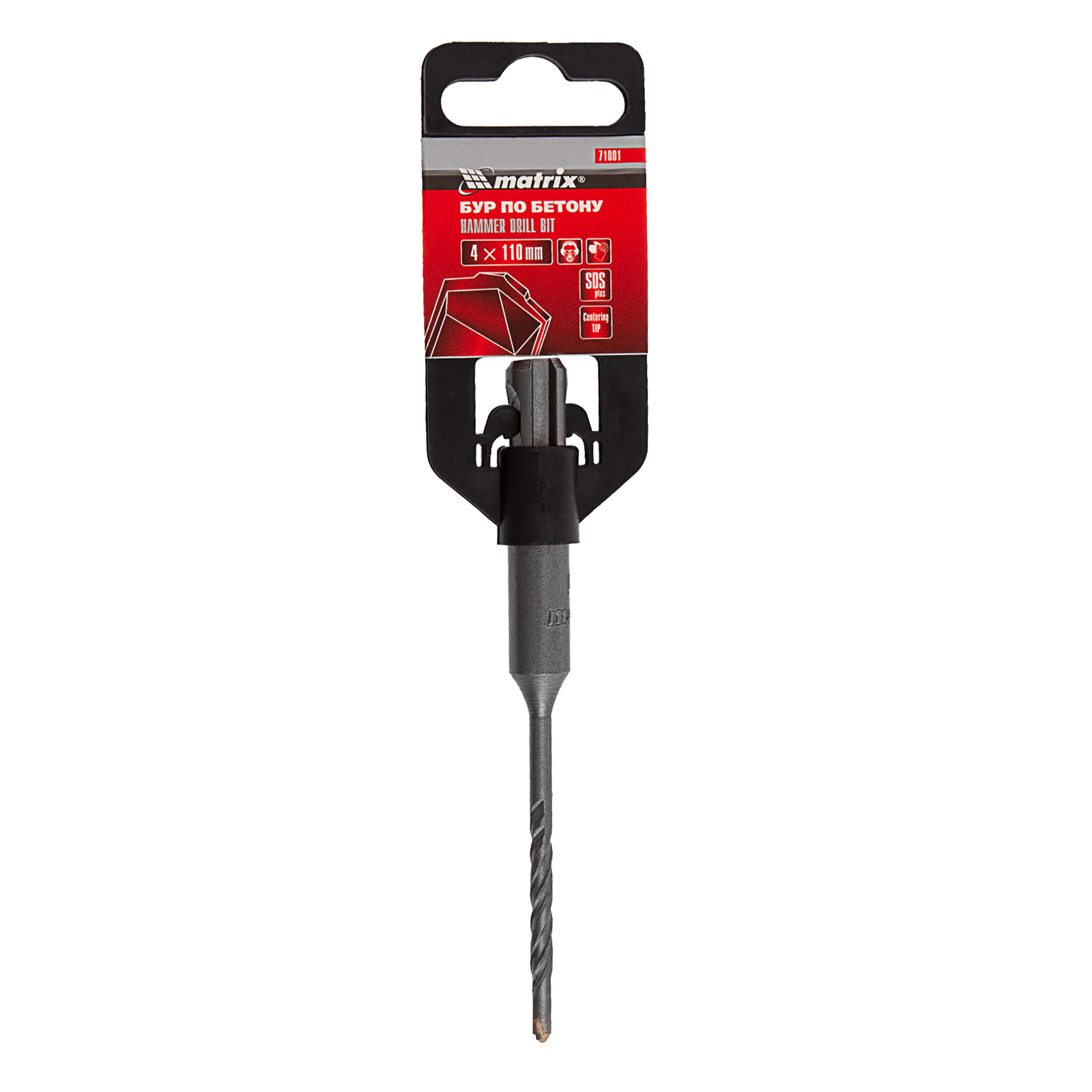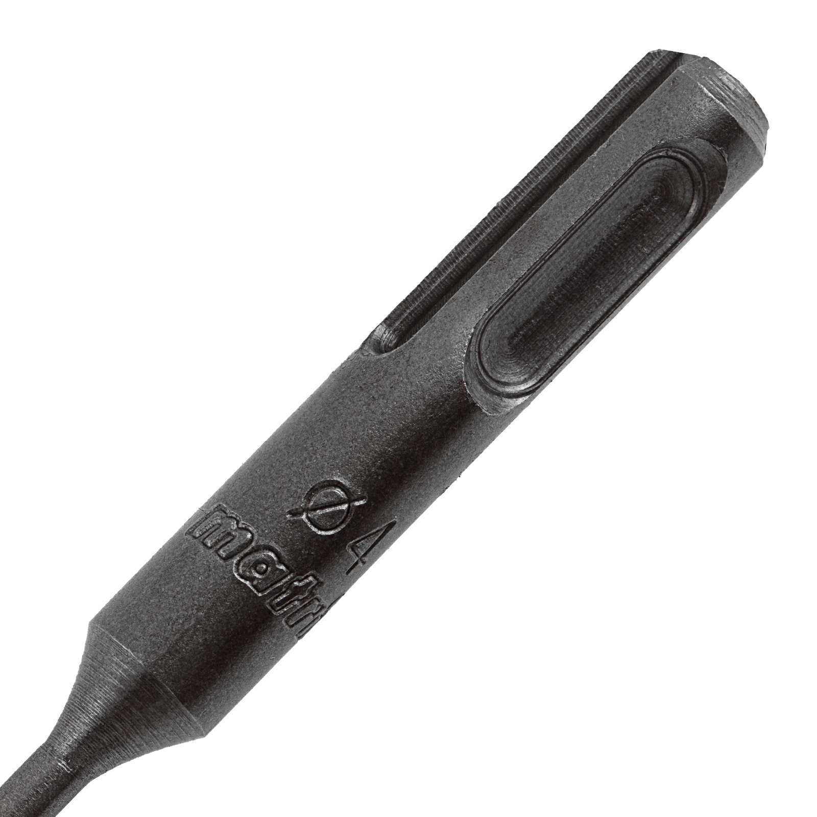 Бур по бетону Matrix 71001, 4 х 110 мм, SDS PLUS предназначен для установки на перфоратор и позволяет получать отверстия диаметром 4 мм в бетоне, камне и кирпиче. Он эффективно решает поставленные задачи благодаря режущей пластине из высокотвердого сплава карбида вольфрама ВК8 твердостью 80-90 HRC.