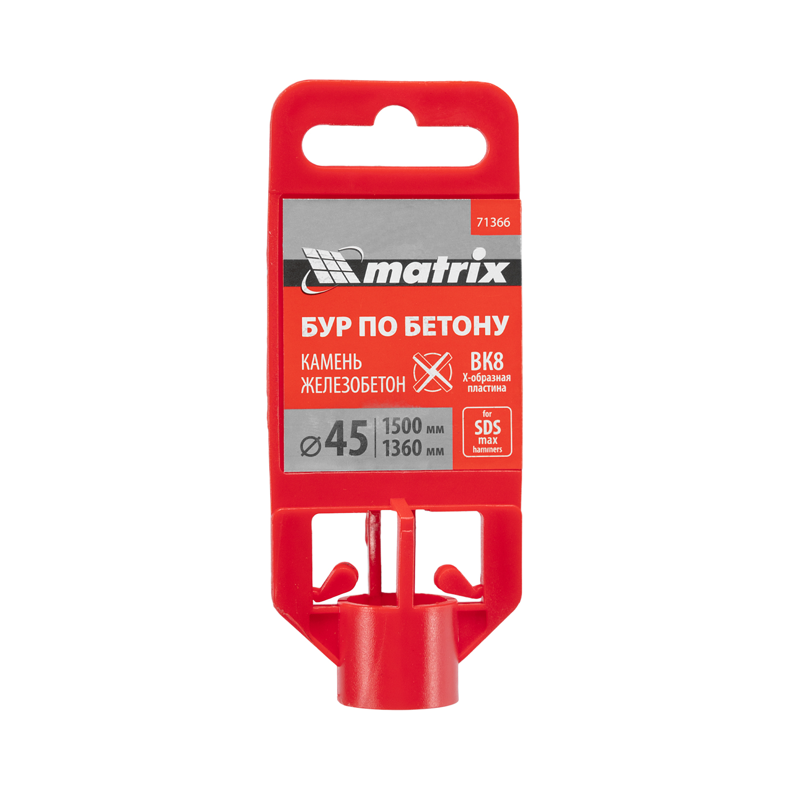 Бур по бетону Matrix 71366 длиной 1500 мм, с хвостовиком SDS MAX и крестовой пластиной, — оснастка для перфораторов высокой мощности, предназначенная для получения отверстий диаметром 45 мм в стенах, полах, перекрытиях. Крестовая пластина в сочетании с усиленной системой крепления SDS MAX позволяет успешно работать с камнем, кирпичом и бетоном, в том числе армированным. Бур используется во время проведения строительных работ, незаменим для прокладки коммуникаций: газо- и водопроводов, электросетей и т.д.