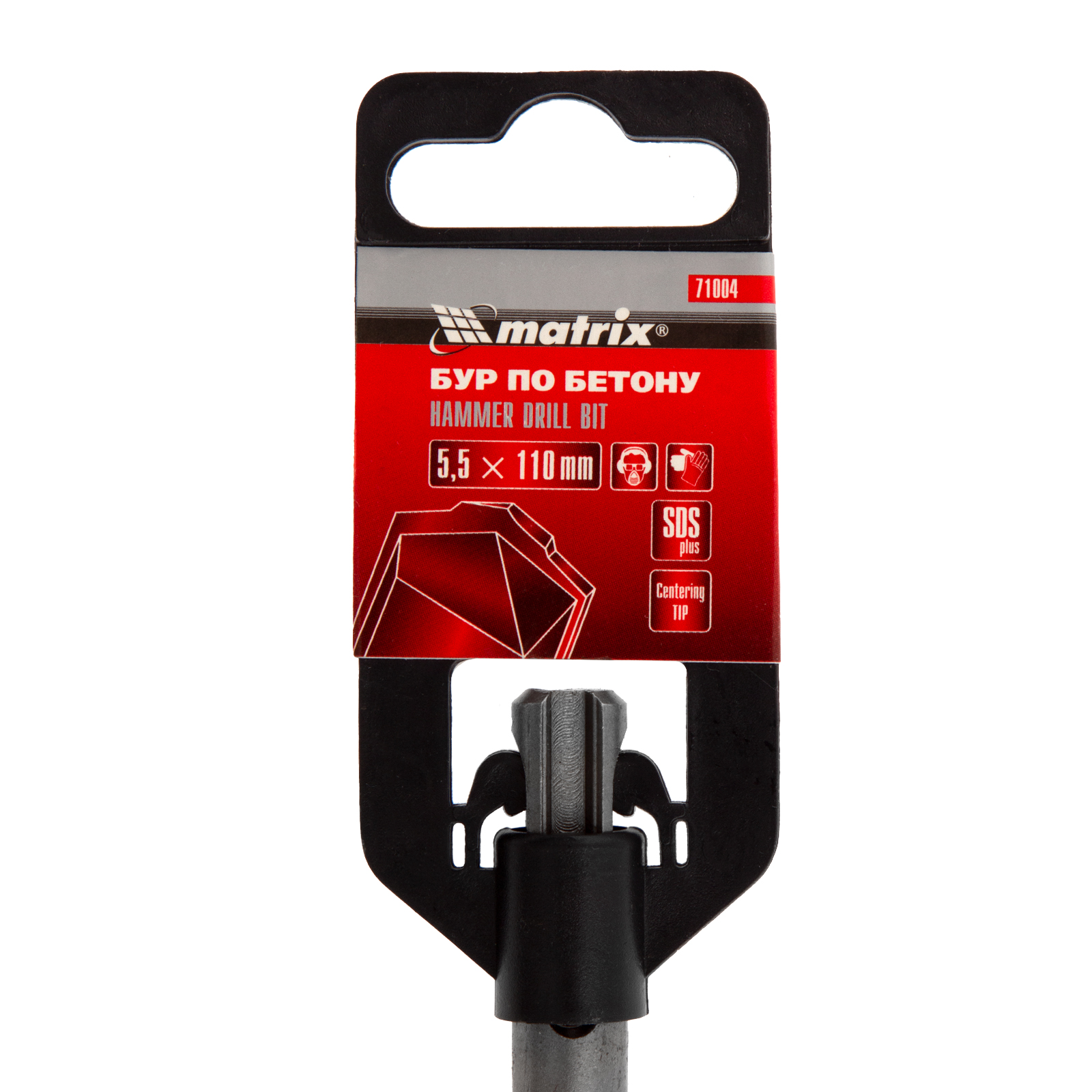 Бур по бетону Matrix 71004, 5,5 х 110 мм, SDS PLUS предназначен для установки на перфоратор и позволяет получать отверстия диаметром 5,5 мм в бетоне, камне и кирпиче. Он эффективно решает поставленные задачи благодаря режущей пластине из высокотвердого сплава карбида вольфрама ВК8 твердостью 80-90 HRC.