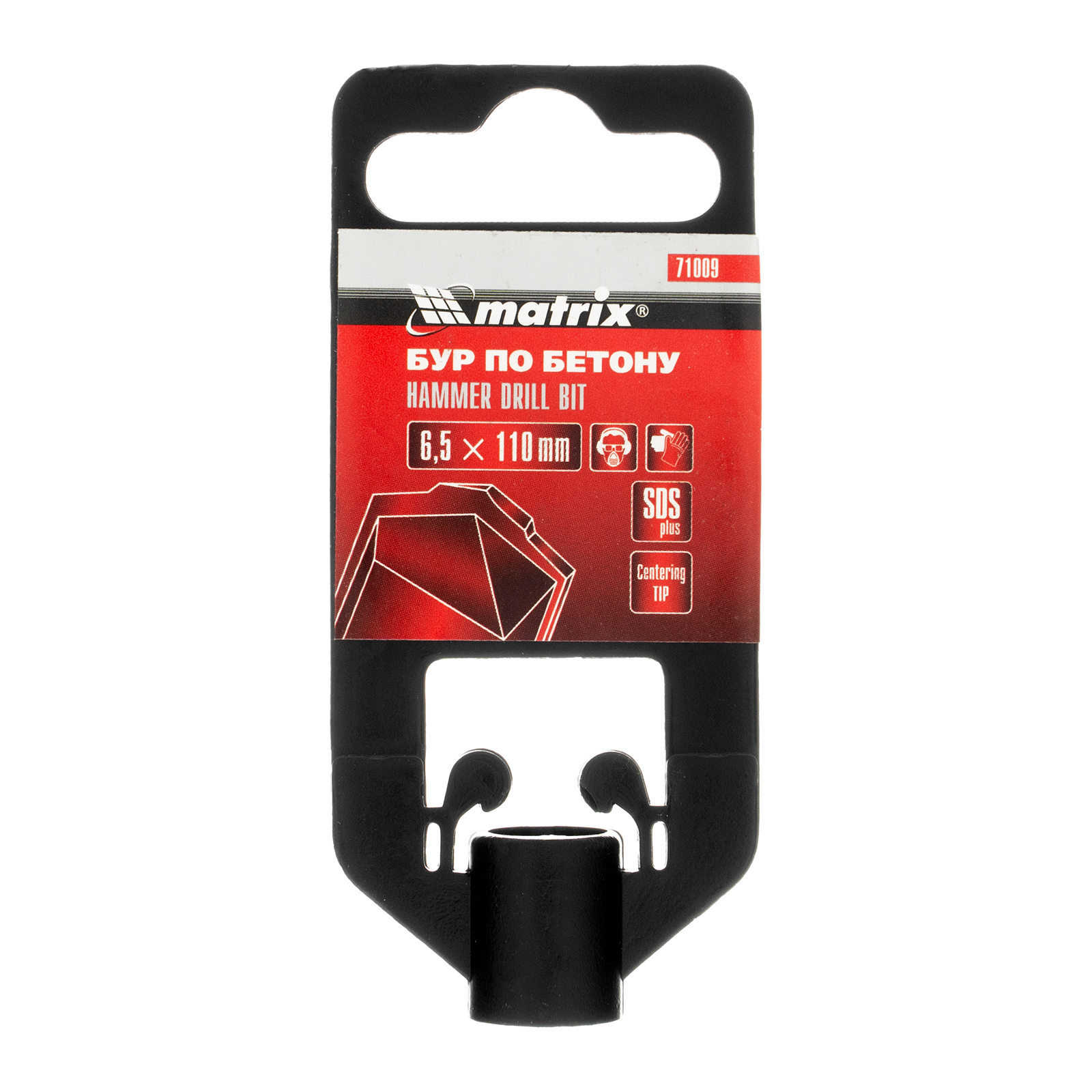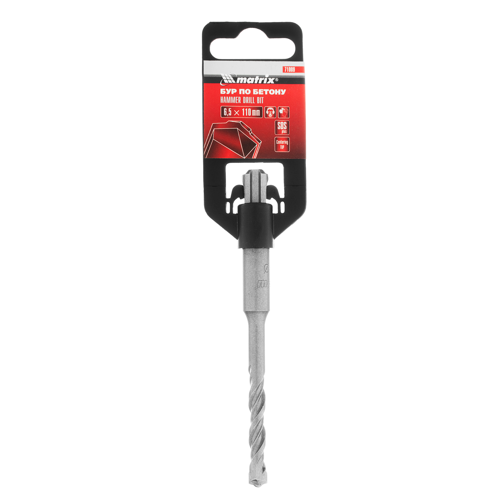 Бур по бетону Matrix 71009, 6,5 х 110 мм, SDS PLUS предназначен для установки на перфоратор и позволяет получать отверстия диаметром 6,5 мм в бетоне, камне и кирпиче. Он эффективно решает поставленные задачи благодаря режущей пластине из высокотвердого сплава карбида вольфрама ВК8 твердостью 80-90 HRC.