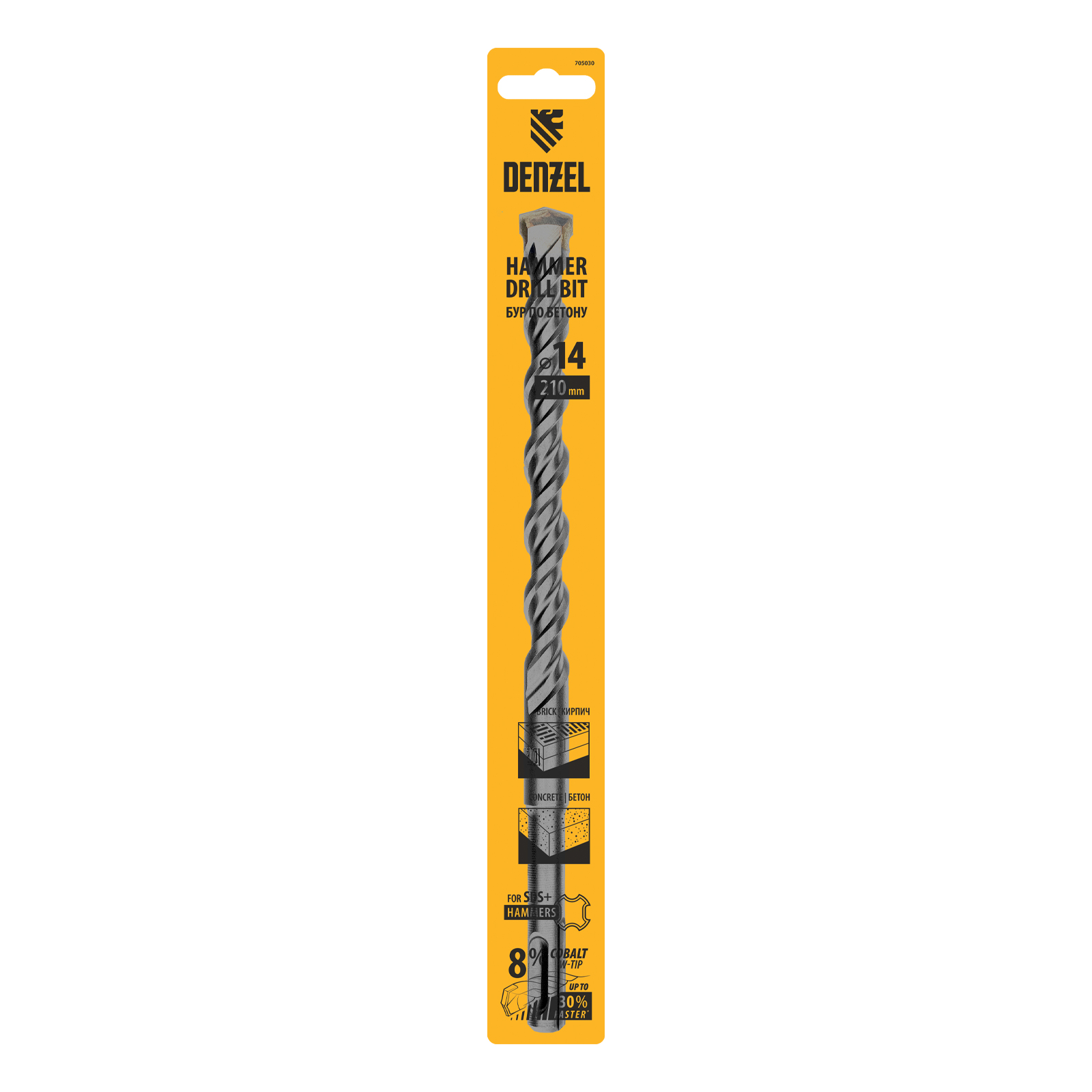 Бур по бетону Denzel Cobalt W-tip 705030 размером 14 х 210 мм, с хвостовиком SDS-plus и двойной спиралью, предназначен для сверления бетона, кирпича и камня. Используется в качестве оснастки для перфораторов с патроном SDS-plus. Бур оптимален для проведения строительных, ремонтных, монтажных работ.