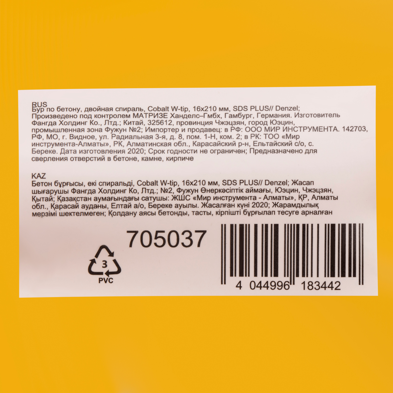 Бур по бетону Denzel Cobalt W-tip 705037 размером 16 х 210 мм, с хвостовиком SDS-plus и двойной спиралью, предназначен для сверления бетона, кирпича и камня. Используется в качестве оснастки для перфораторов с патроном SDS-plus. Бур оптимален для проведения строительных, ремонтных, монтажных работ.