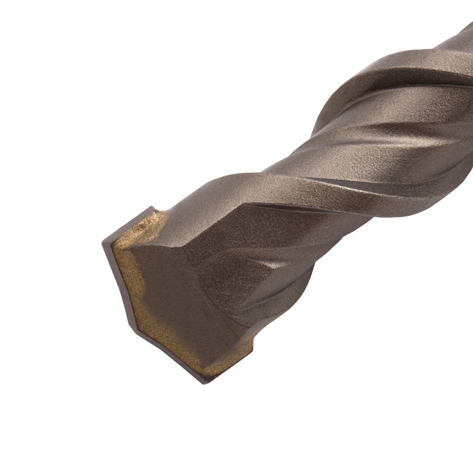 - Эффективный отвод шлама — двойная спираль и канавка с дополнительным желобом обеспечивают быстрое удаление пыли, что предотвращает перегрев рабочей части и продлевает срок службы бура.