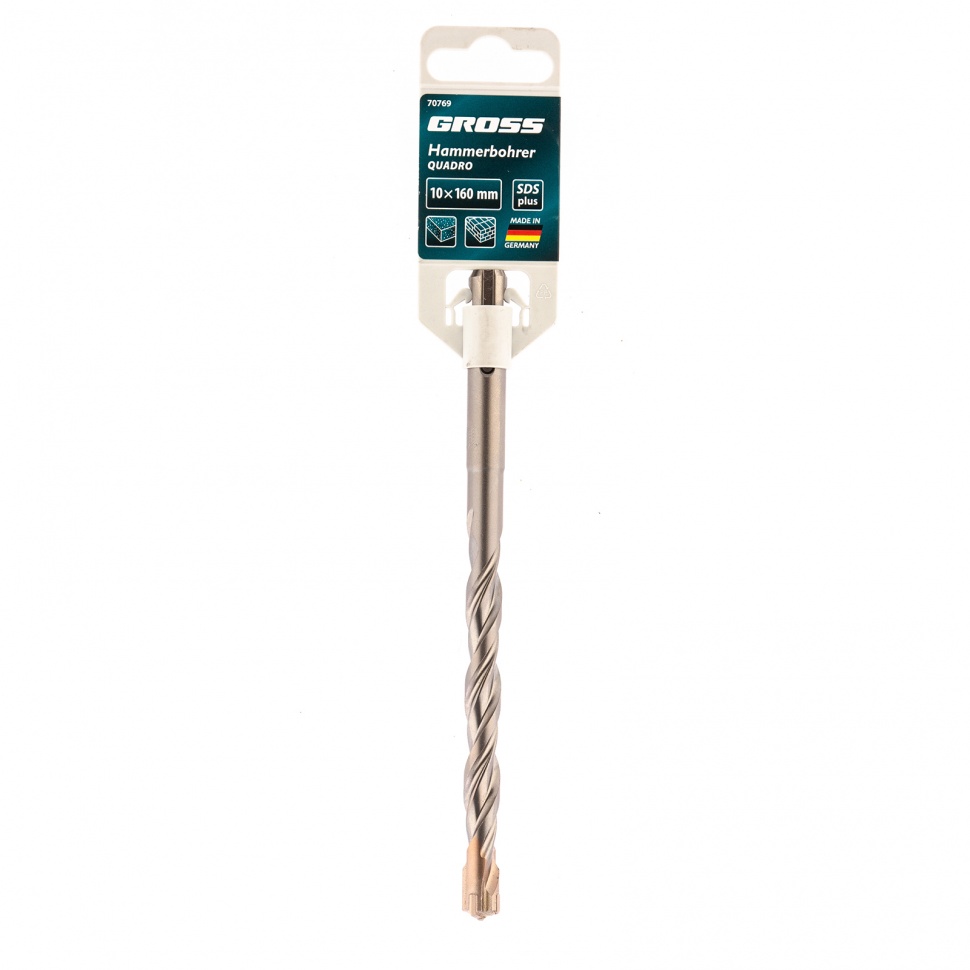 Бур по бетону Gross QUADRO 70769 размером 10 х 160 мм устанавливается в перфораторы с патроном SDS PLUS. Он рассчитан на профессиональное применение, выдерживает высокие нагрузки и справляется с бурением кирпича, камня, армированного бетона. Применяется при проведении ремонтных, строительных, монтажных/демонтажных работ.