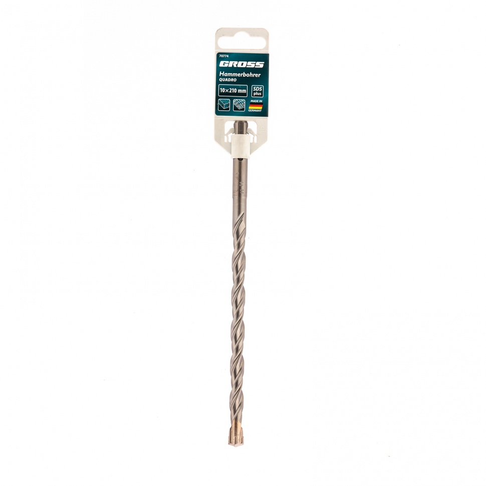 Бур по бетону Gross QUADRO 70774 размером 10 х 210 мм устанавливается в перфораторы с патроном SDS PLUS. Он рассчитан на профессиональное применение, выдерживает высокие нагрузки и справляется с бурением кирпича, камня, армированного бетона. Применяется при проведении ремонтных, строительных, монтажных/демонтажных работ.