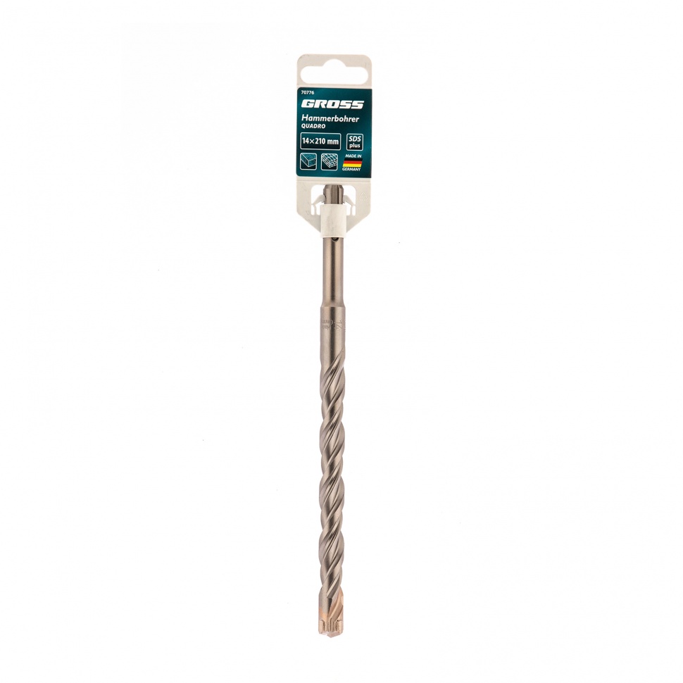 Бур по бетону Gross QUADRO 70776 размером 14 х 210 мм устанавливается в перфораторы с патроном SDS PLUS. Он рассчитан на профессиональное применение, выдерживает высокие нагрузки и справляется с бурением кирпича, камня, армированного бетона. Применяется при проведении ремонтных, строительных, монтажных/демонтажных работ.