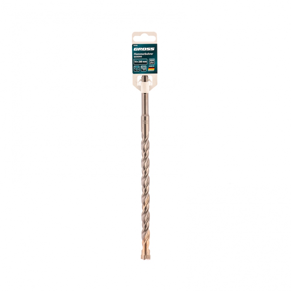 Бур по бетону Gross QUADRO 70781 размером 14 х 260 мм устанавливается в перфораторы с патроном SDS PLUS. Он рассчитан на профессиональное применение, выдерживает высокие нагрузки и справляется с бурением кирпича, камня, армированного бетона. Применяется при проведении ремонтных, строительных, монтажных/демонтажных работ.