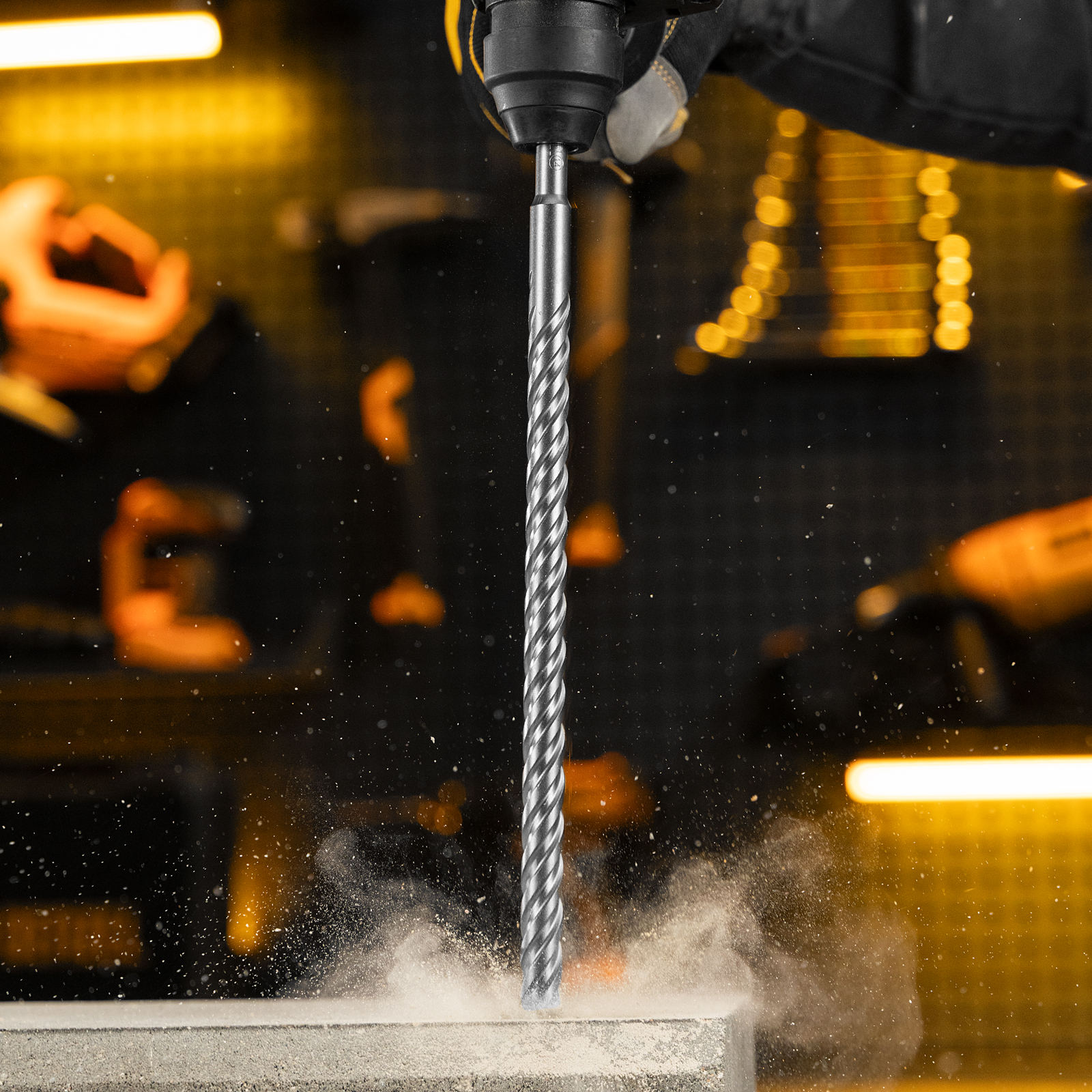 Бур по бетону Denzel 705320 длиной 315 мм, с цельной крестовой пластиной и хвостовиком SDS-plus — оснастка для перфораторов, предназначенная для получения отверстий диаметром 14 мм в бетоне, кирпиче, камне. Благодаря цельному карбидному наконечнику с 4 режущими кромками бур оптимален для работы с материалами высокой твердости, в том числе с армированным бетоном. Оснастка превосходит большинство аналогов по своим рабочим качествам и подходит для профессионального использования.