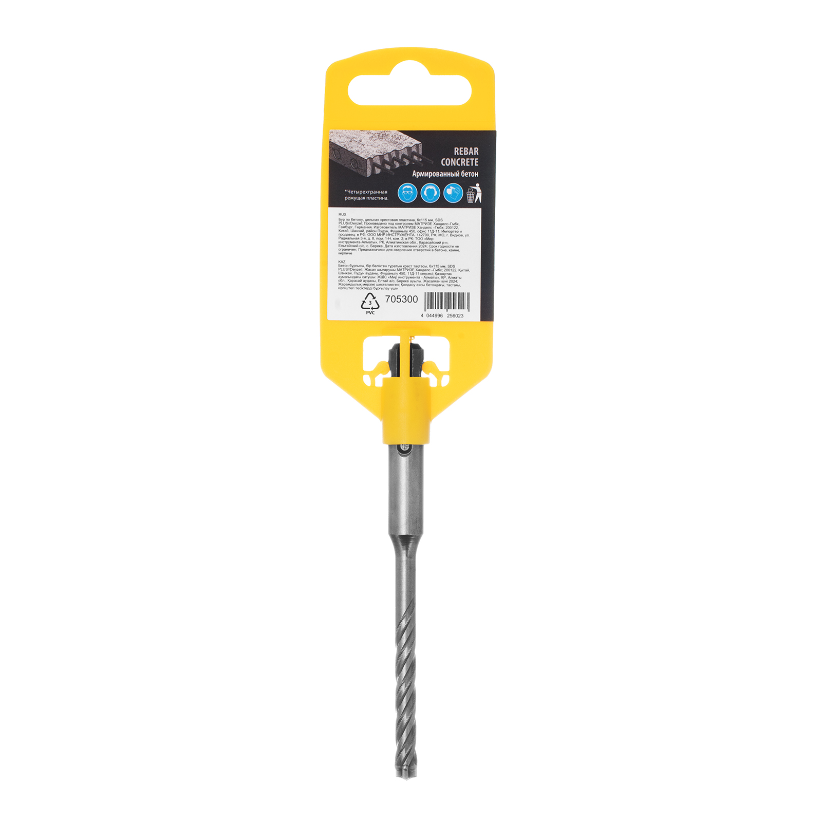 Бур по бетону Denzel 705300 длиной 115 мм, с цельной крестовой пластиной и хвостовиком SDS-plus — оснастка для перфораторов, предназначенная для получения отверстий диаметром 6 мм в бетоне, кирпиче, камне. Благодаря цельному карбидному наконечнику с 4 режущими кромками бур оптимален для работы с материалами высокой твердости, в том числе с армированным бетоном. Оснастка превосходит большинство аналогов по своим рабочим качествам и подходит для профессионального использования.