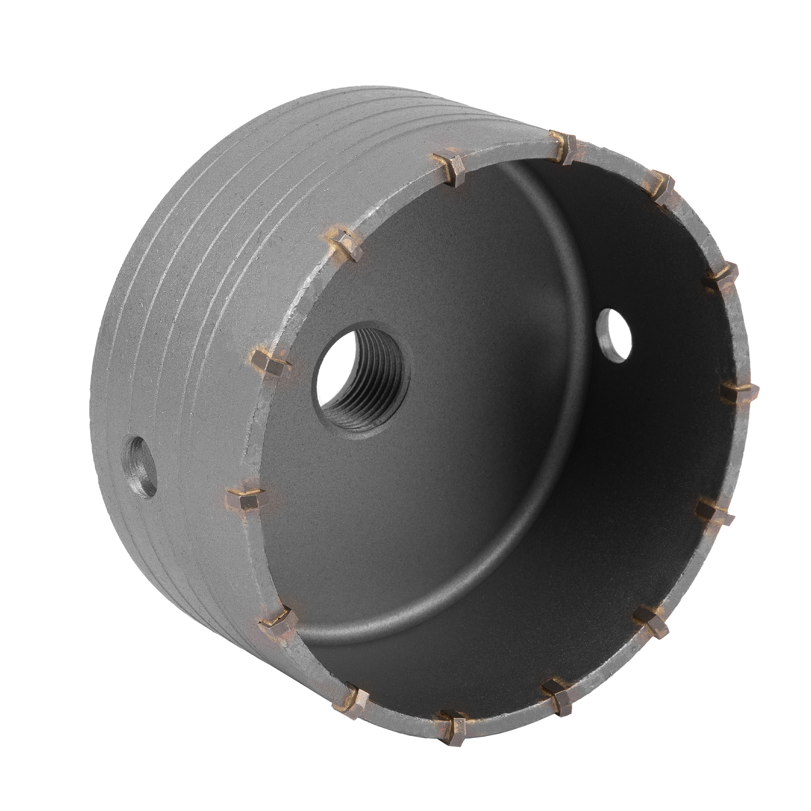 Буровая коронка Matrix 70392 с посадкой M22, диаметром 115 мм, рассчитана на сверление отверстий в бетоне, кирпиче, граните, природном и искусственном камне. Устанавливается на ударные дрели или перфораторы с патронами под хвостовик SDS-Plus или SDS-Max. Коронка позволяет получить большие отверстия, поэтому пригодится для монтажа розеток, выключателей и прокладки труб.