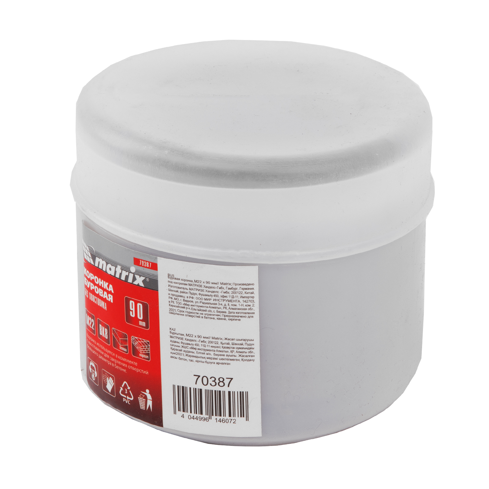 Буровая коронка M22 х 90 мм Matrix 70387 рассчитана на сверление отверстий в бетоне, кирпиче, граните, природном и искусственном камне. Устанавливается на ударные дрели или перфораторы с патронами под хвостовик SDS-Plus или SDS-Max. Коронка позволяет получить большие отверстия, поэтому пригодится для монтажа розеток, выключателей и прокладки труб.