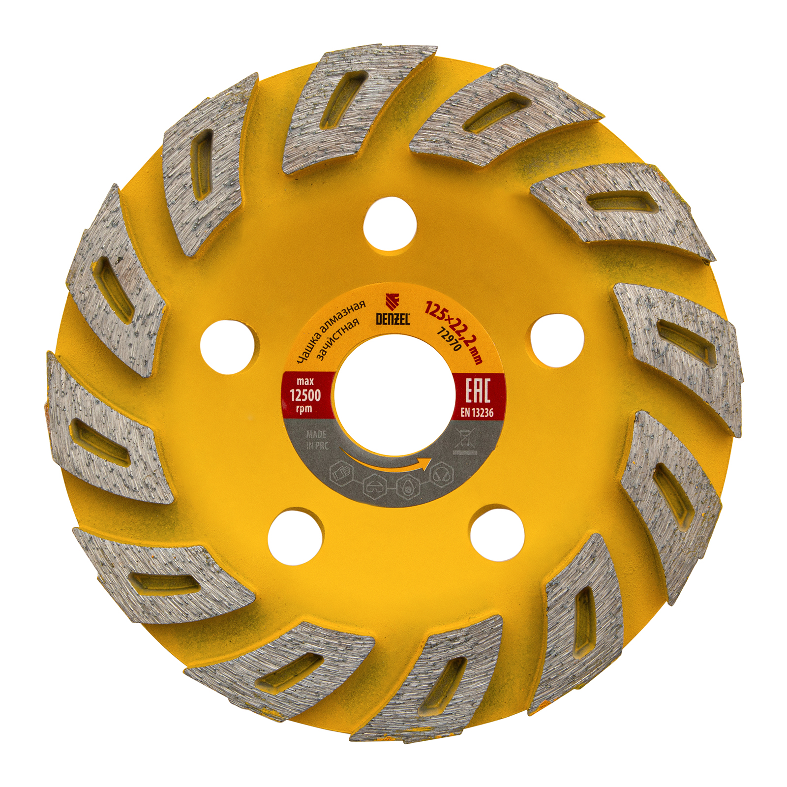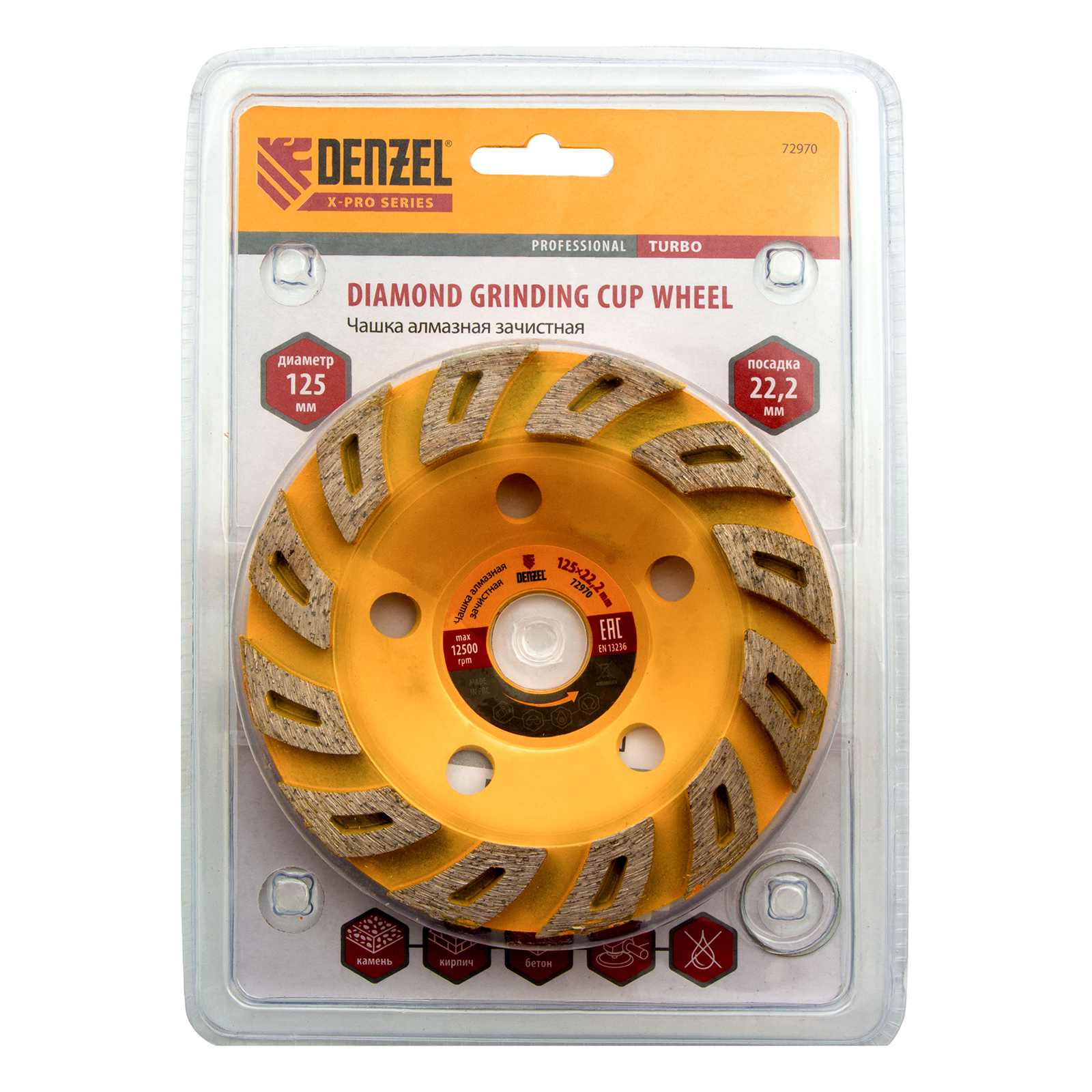 Алмазная зачистная чашка Denzel Турбо 72970 диаметром 125 мм имеет посадочный диаметр 22,2 мм и предназначена для установки на вал углошлифовальной машины. Используется для чистового шлифования бетона, камня, кирпича, гранита, мрамора. Эффективно удаляет мелкие неровности, придавая поверхности гладкость. Оптимально подобранная связка в сочетании с высокой концентрацией алмазов обеспечивает максимальную производительность чашки. Чашка рекомендована для профессионального использования.