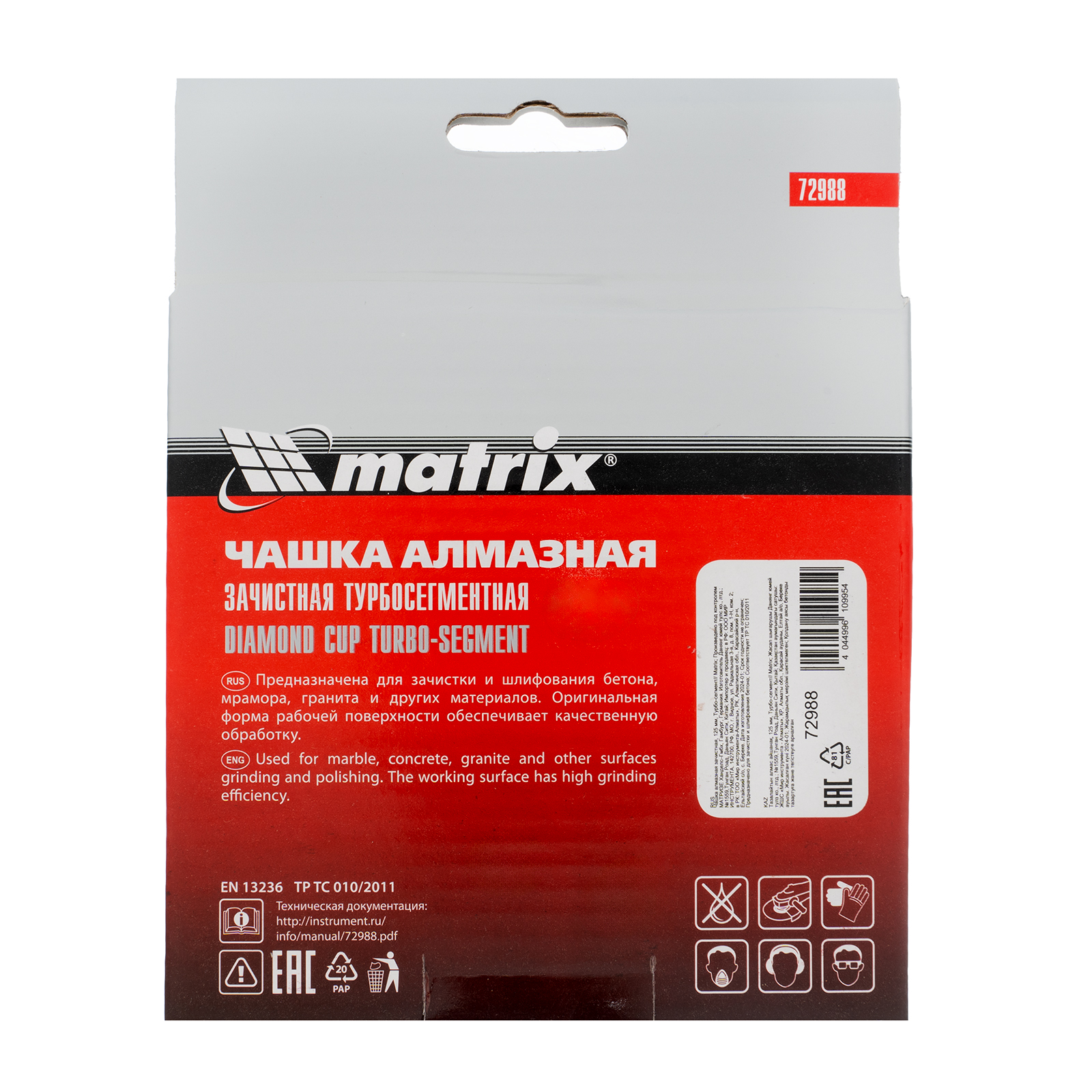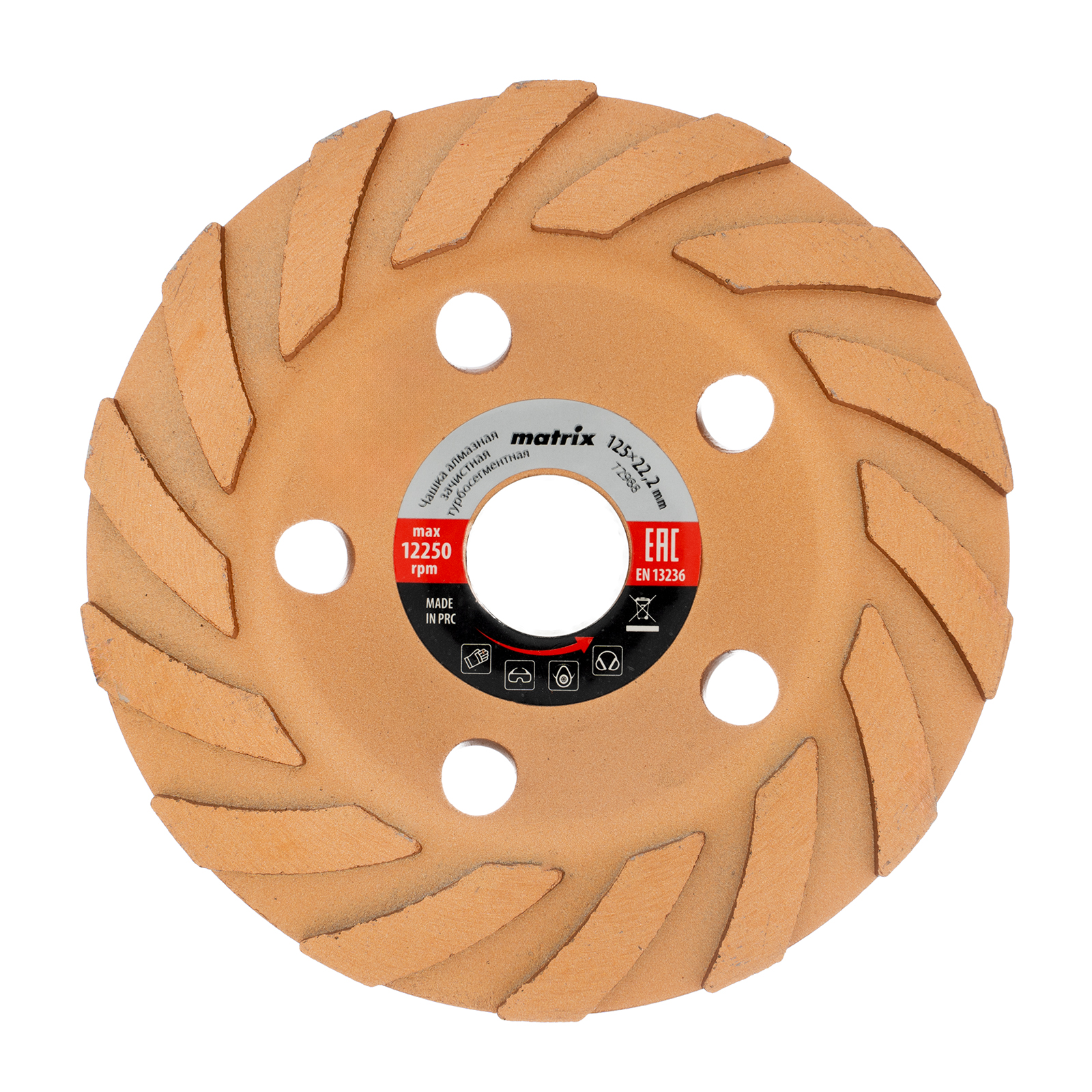 Алмазная зачистная чашка Matrix Турбо-сегмент 72988 диаметром 125 мм имеет посадочное отверстие 22,2 мм и устанавливается на вал углошлифовальной машины. Используется для шлифования бетона, камня, кирпича, мрамора и гранита с целью устранения неровностей, зачистки швов, а также придания гладкости поверхности. Зачистная чашка рекомендована для профессионального использования.