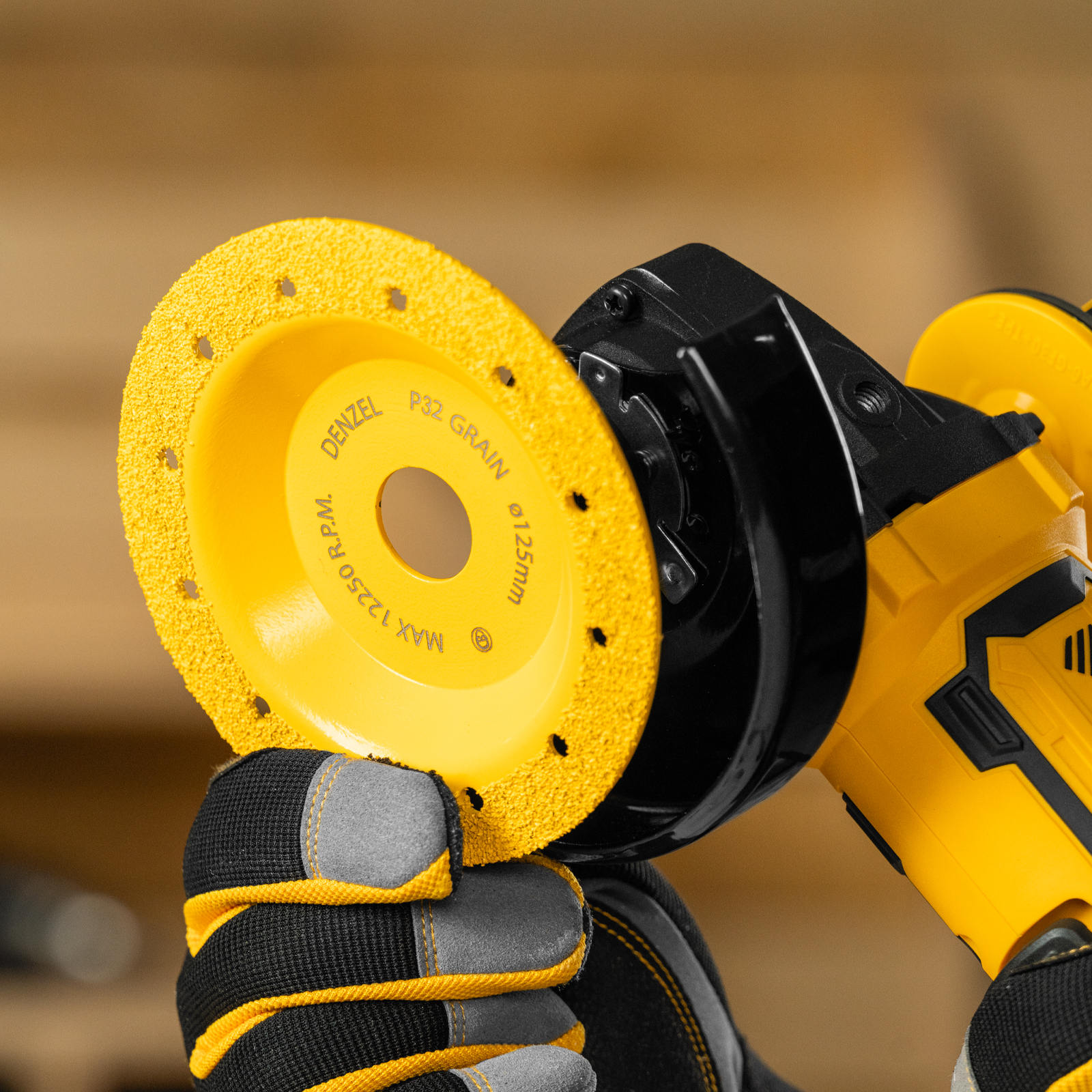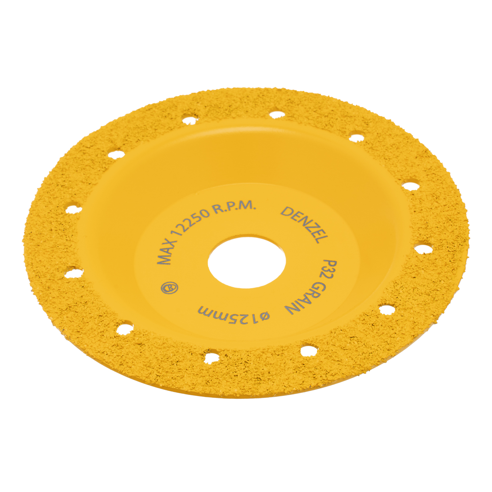 Твердосплавная зачистная чашка Denzel 72978 диаметром 125 мм, с плоской рабочей частью и мелким зерном P32, используется для проведения шлифовальных работ при помощи углошлифовальной машины (УШМ). Мелкозернистый абразив оптимален для чистовой обработки твердой и мягкой древесины, кирпича, пластика, резины, газобетона. С помощью чашки можно устранить мелкие неровности, остатки старого покрытия, подготовить поверхности к дальнейшей отделке. Режущие частицы из твердого сплава ВК8 не образуют абразивную пыль, что снижает вредное воздействие на здоровье пользователя. Оснастка пригодится при проведении строительных, ремонтных и отделочных работ.