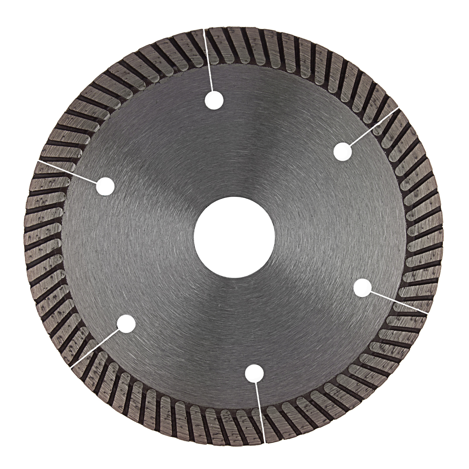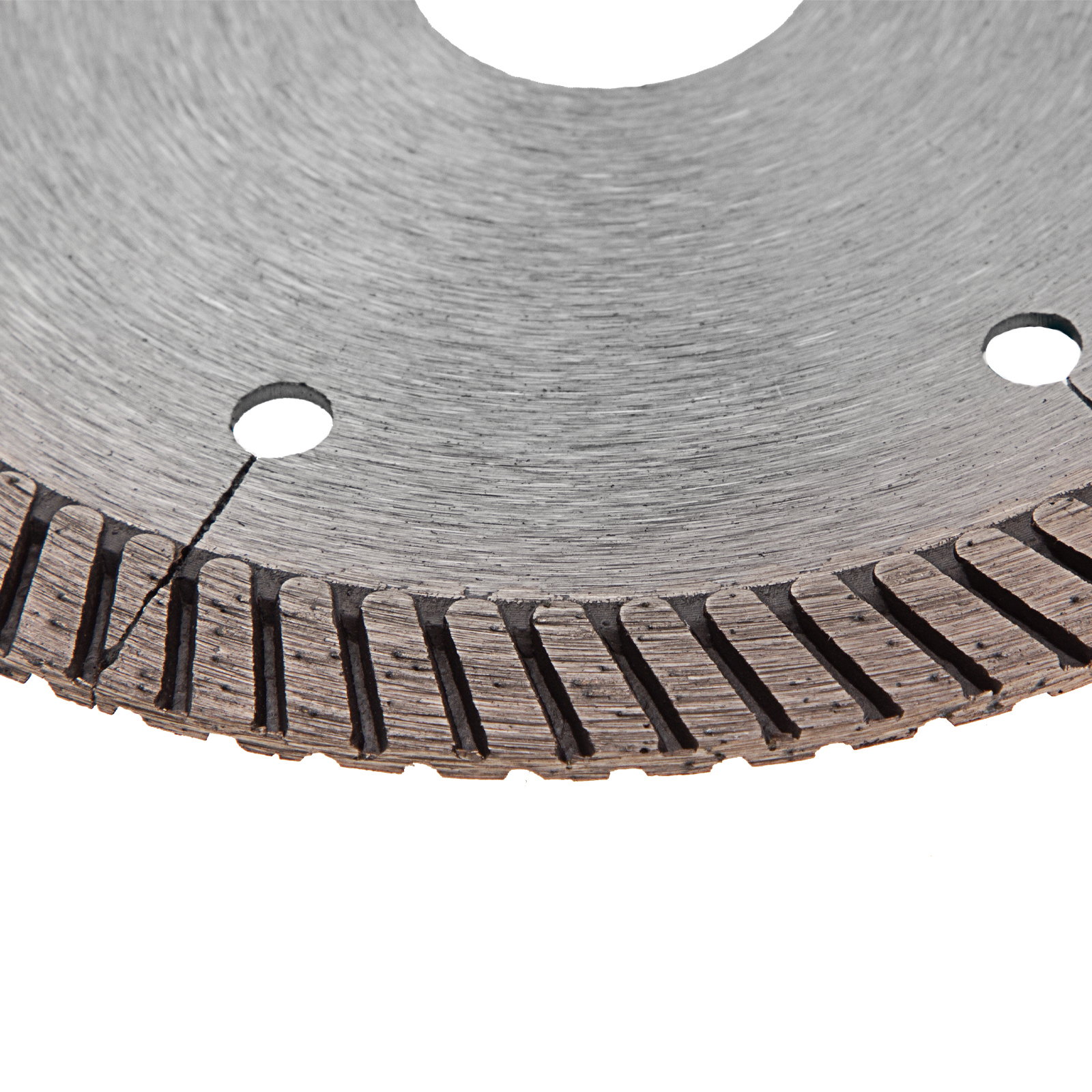 Алмазный диск Gross ф115 х 22,2 мм 73028 турбо с лазерной перфорацией применяется для сухого резания твердых материалов: бетона, в том числе свежего, железобетона, кирпича, гранита, камня и песчаника. Возможность работы с разными типами материалов обусловлена оптимально подобранной металлической связкой. Инструмент используется в качестве расходника на профессиональных УШМ. Лазерная перфорация обеспечивает усиленное охлаждение диска, поэтому он оптимален для интенсивной эксплуатации.