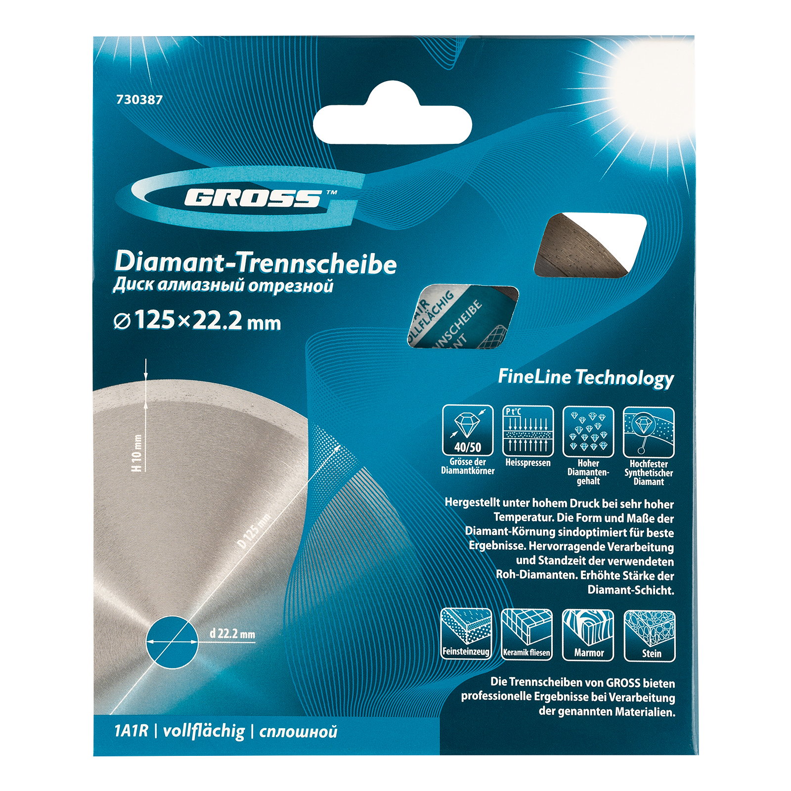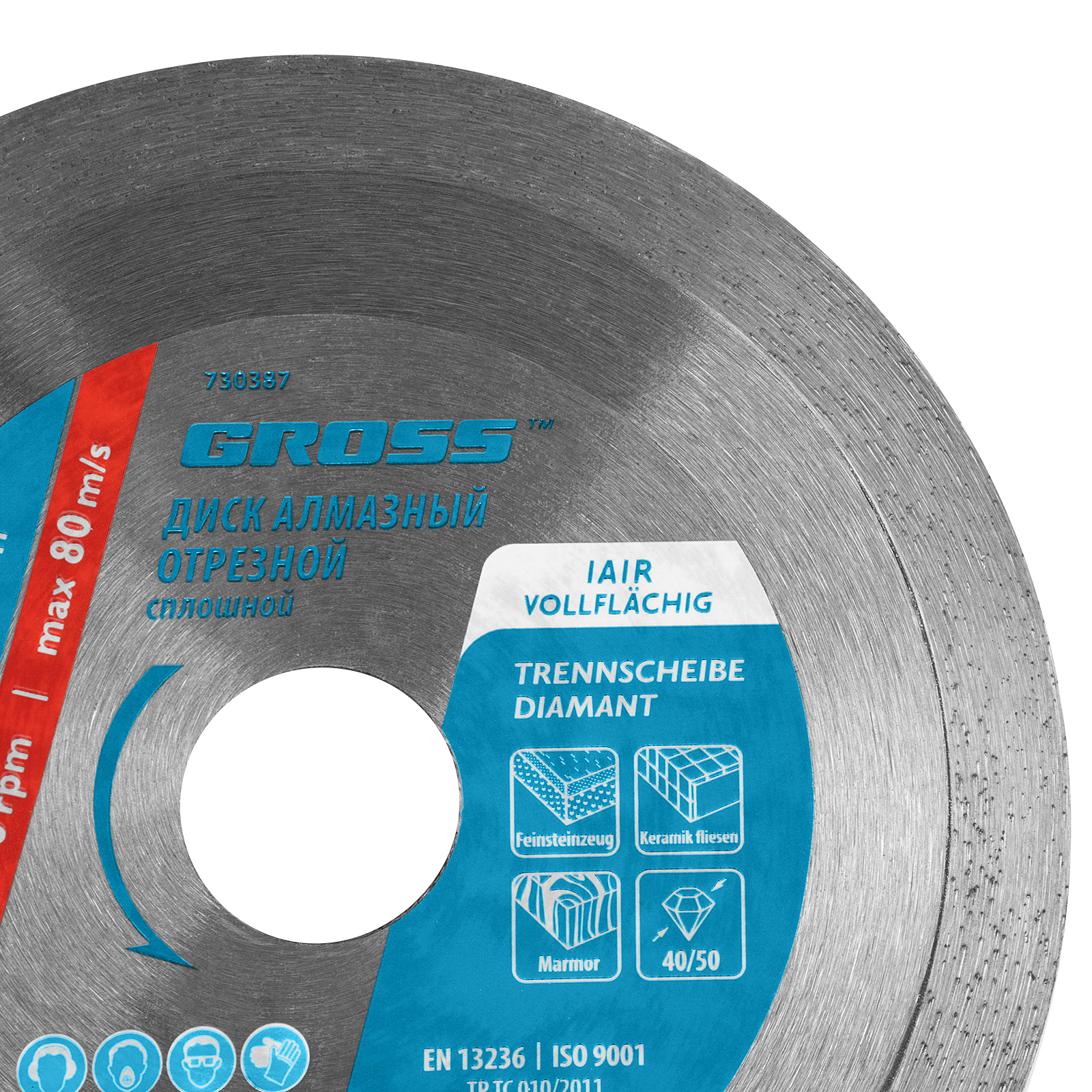 Сплошной алмазный диск Gross 730387 диаметром 125 х 22,2 мм предназначен для мокрой резки бетона, кирпича, гранита и керамогранита, мрамора и камня. Устанавливается на профессиональную углошлифовальную машину или плиткорез с посадочным диаметром 22,2 мм, рассчитан на большой объем работ. Благодаря сплошной конструкции диска срез получается аккуратным и ровным, без сколов. Во время работы рекомендуется использовать водяное охлаждение для качественного отвода пыли и защиты диска от перегрева.