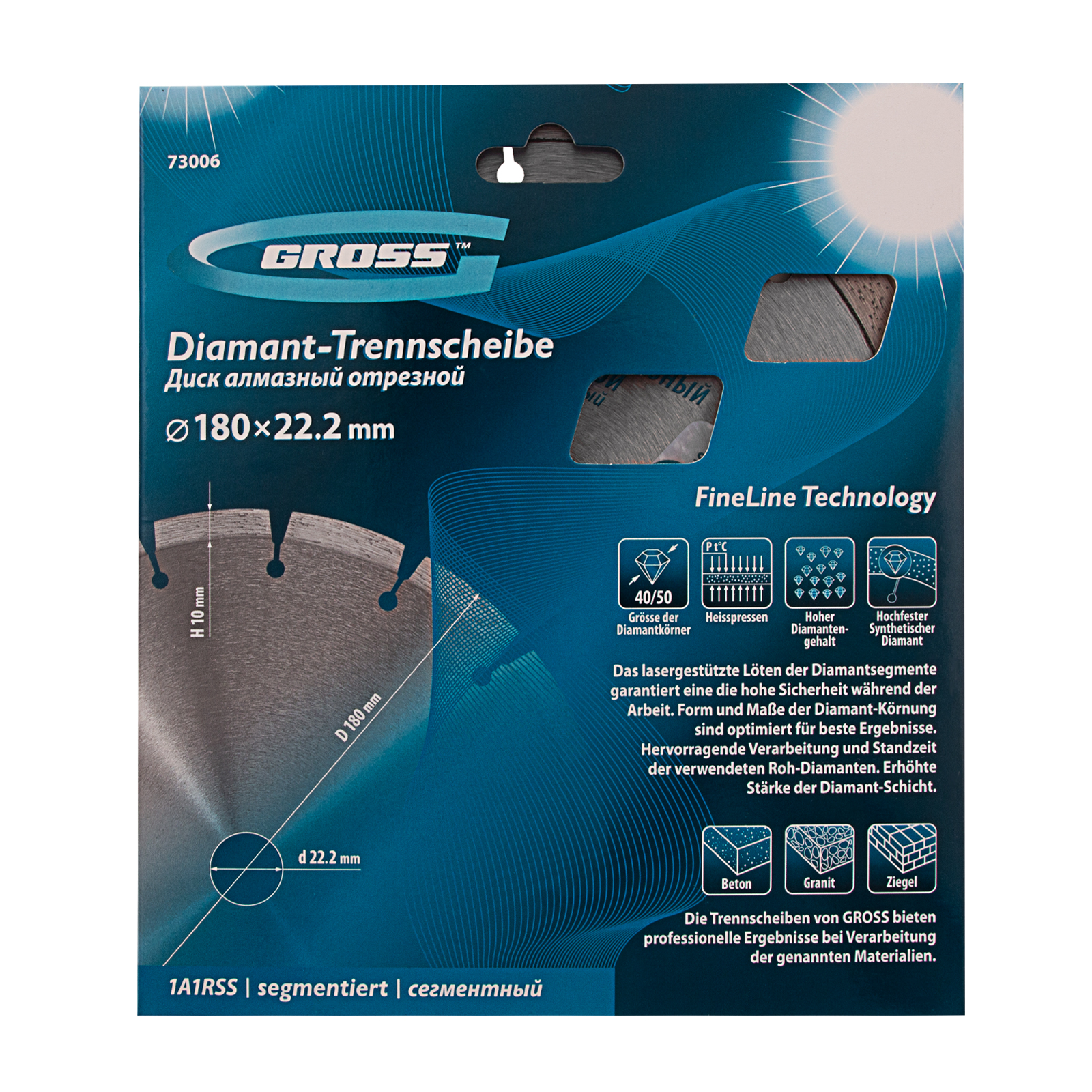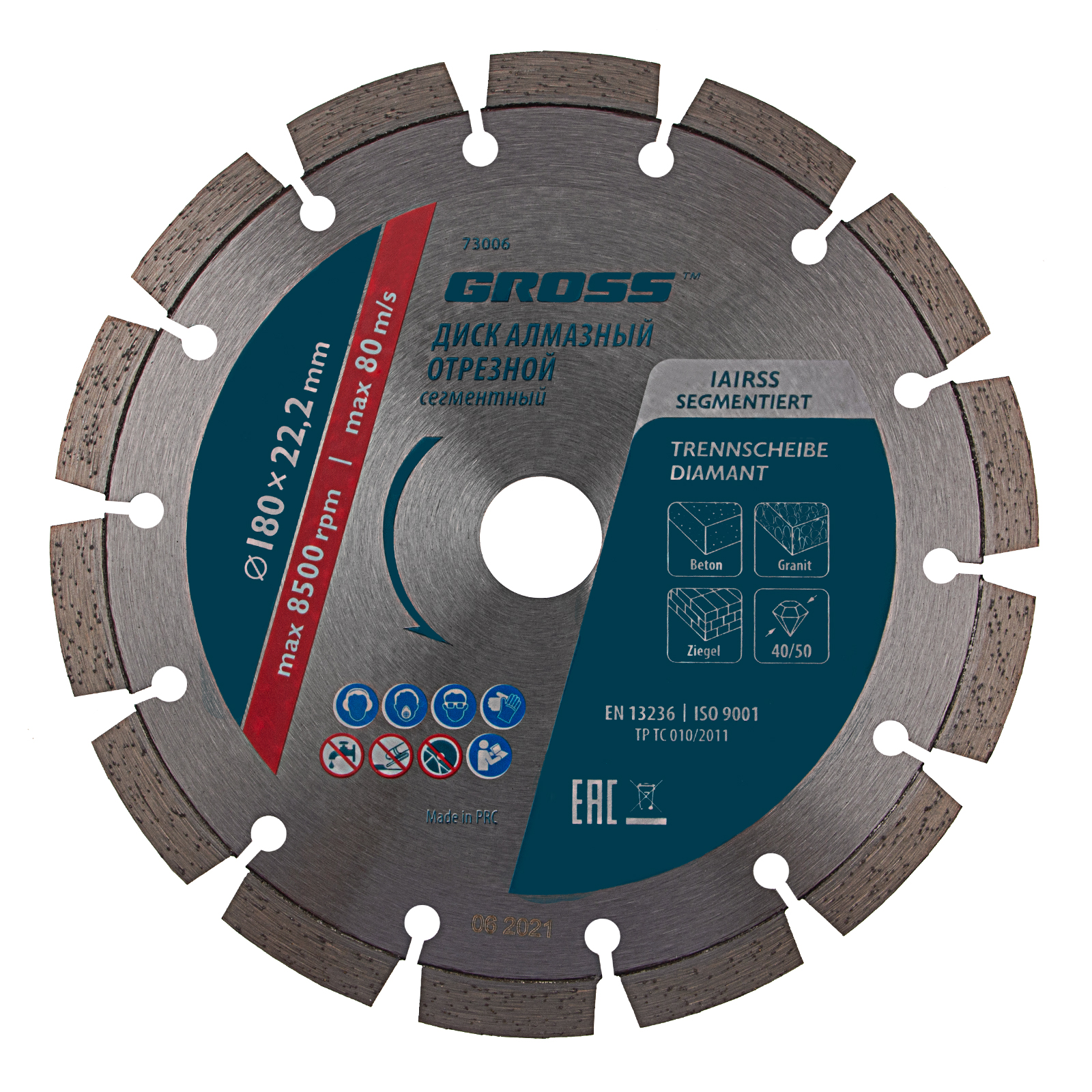Алмазный диск Gross 73006 диаметром 180 х 22,2 мм, с лазерной приваркой сегментов, предназначен для сухой резки бетона, в том числе свежего, кирпича, песчаника и гранита. Посадочный диаметр 22,2 мм позволяет использовать диск в качестве оснастки для УШМ. Сегментное строение снижает риск деформации и обеспечивает быстрое сухое резание без необходимости водяного охлаждения. Благодаря оптимально подобранной связке диск выдерживает высокие нагрузки при выполнении большого объема работ. Подходит как для интенсивного бытового, так и для профессионального применения.