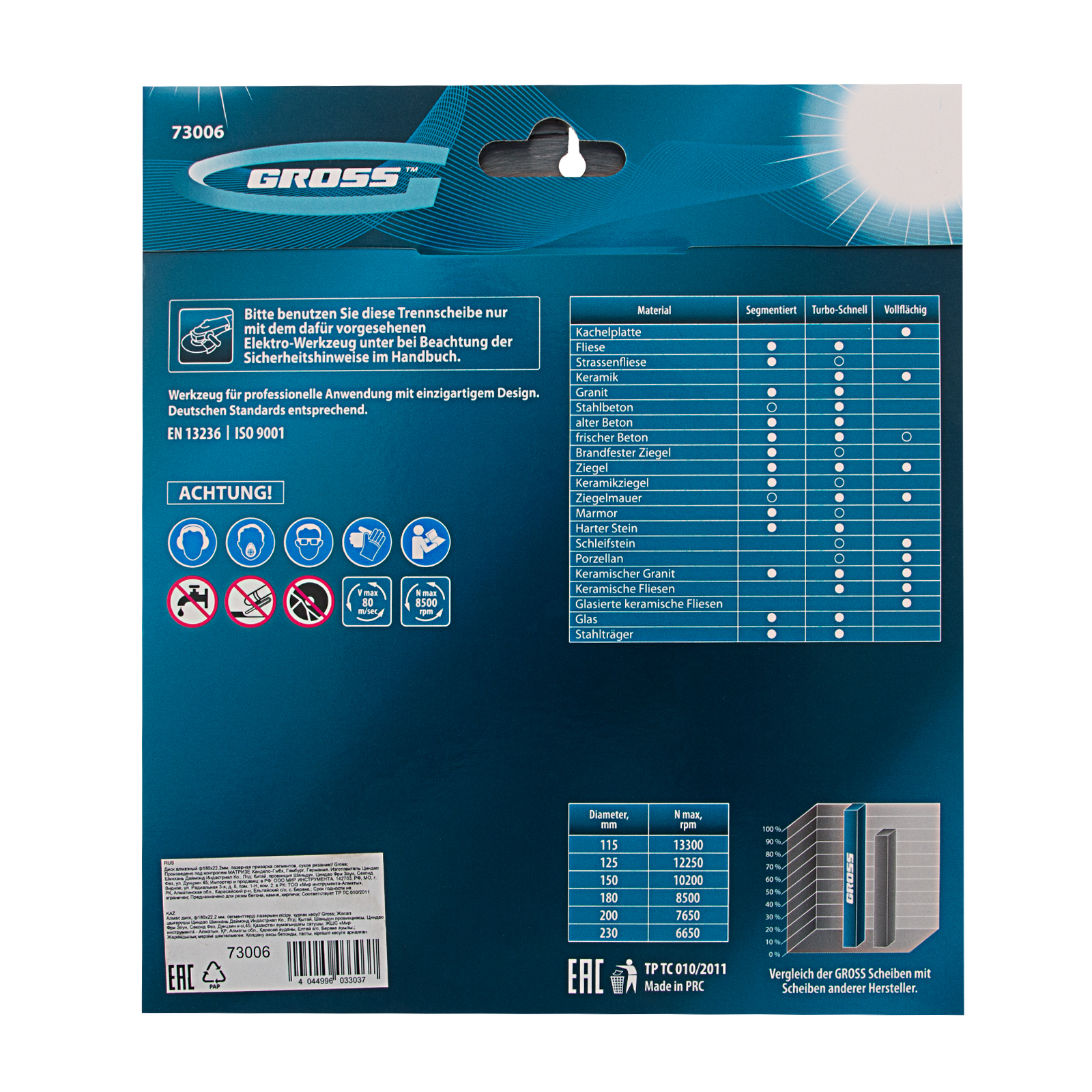 Прочность — диск из стали 65Mn способен быстро резать различные материалы без риска деформации.