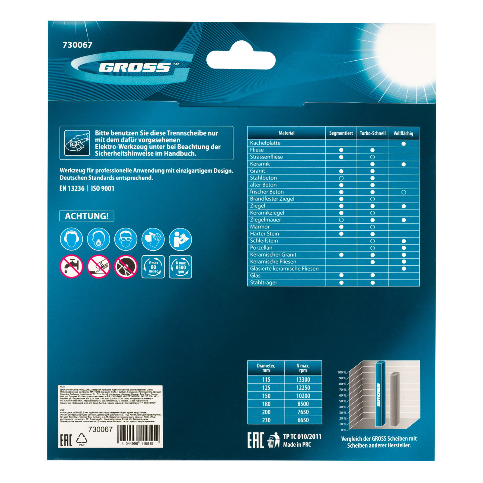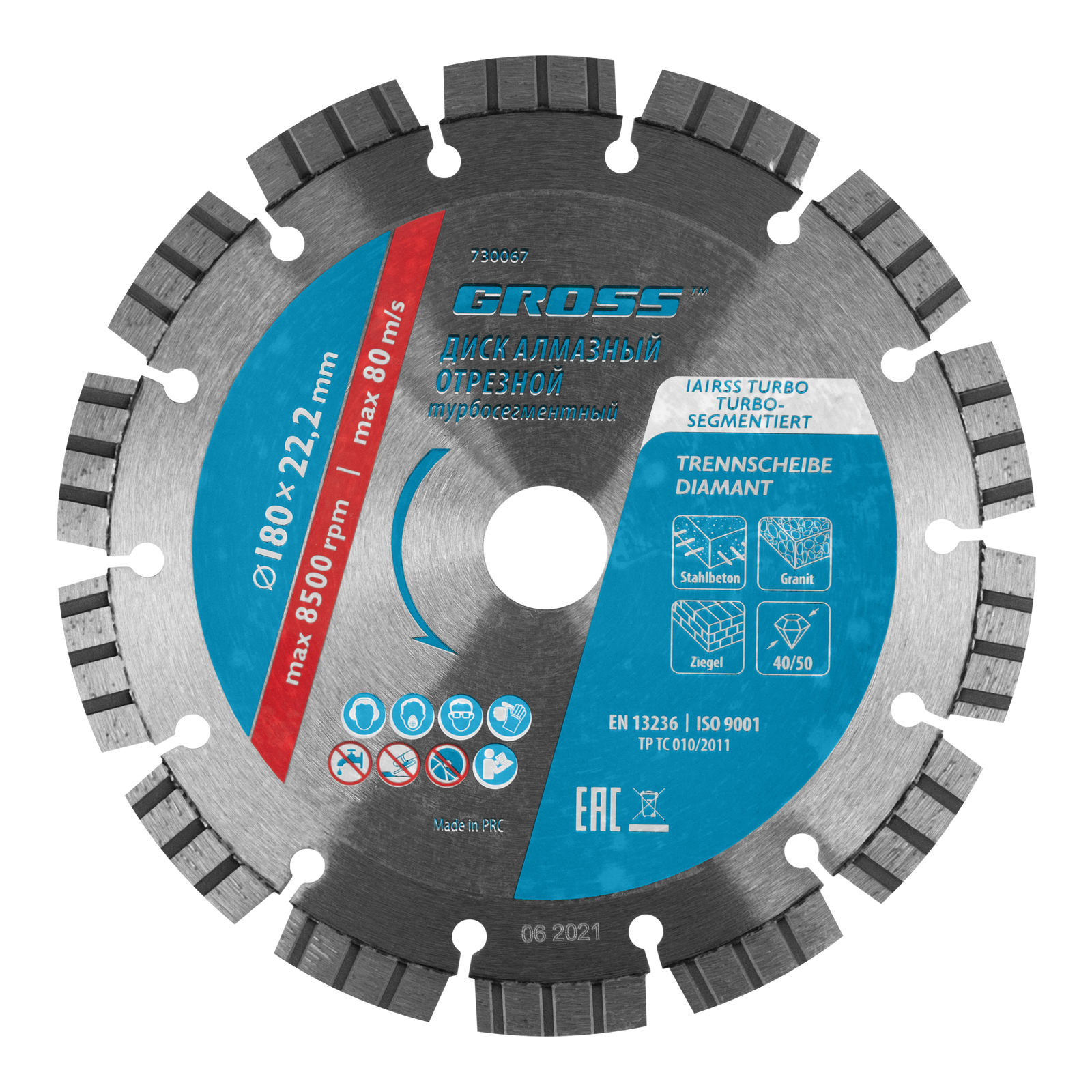 - Надежная фиксация алмазного слоя — лазерная приварка сегментов обеспечивает диску высокую стойкость к нагрузкам.