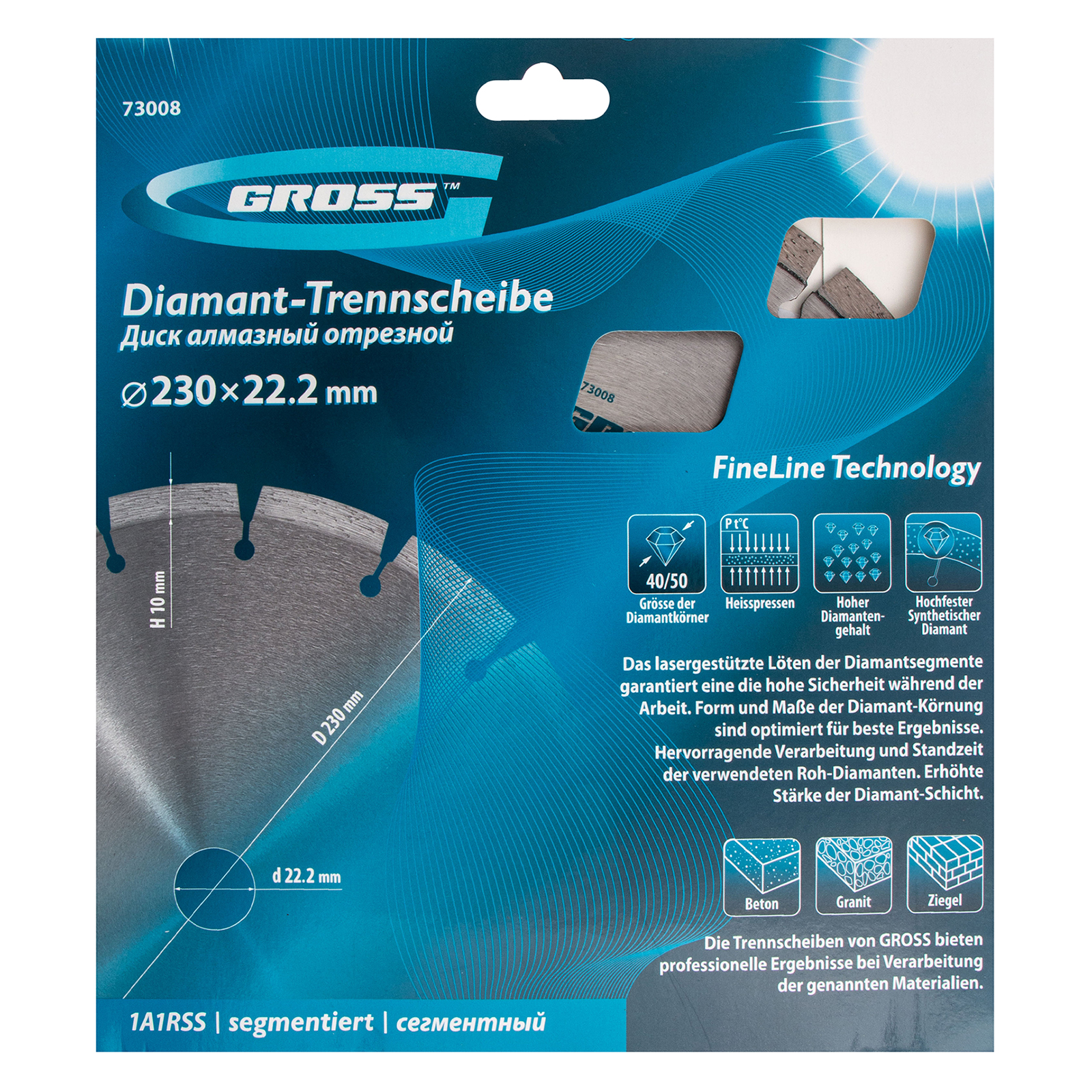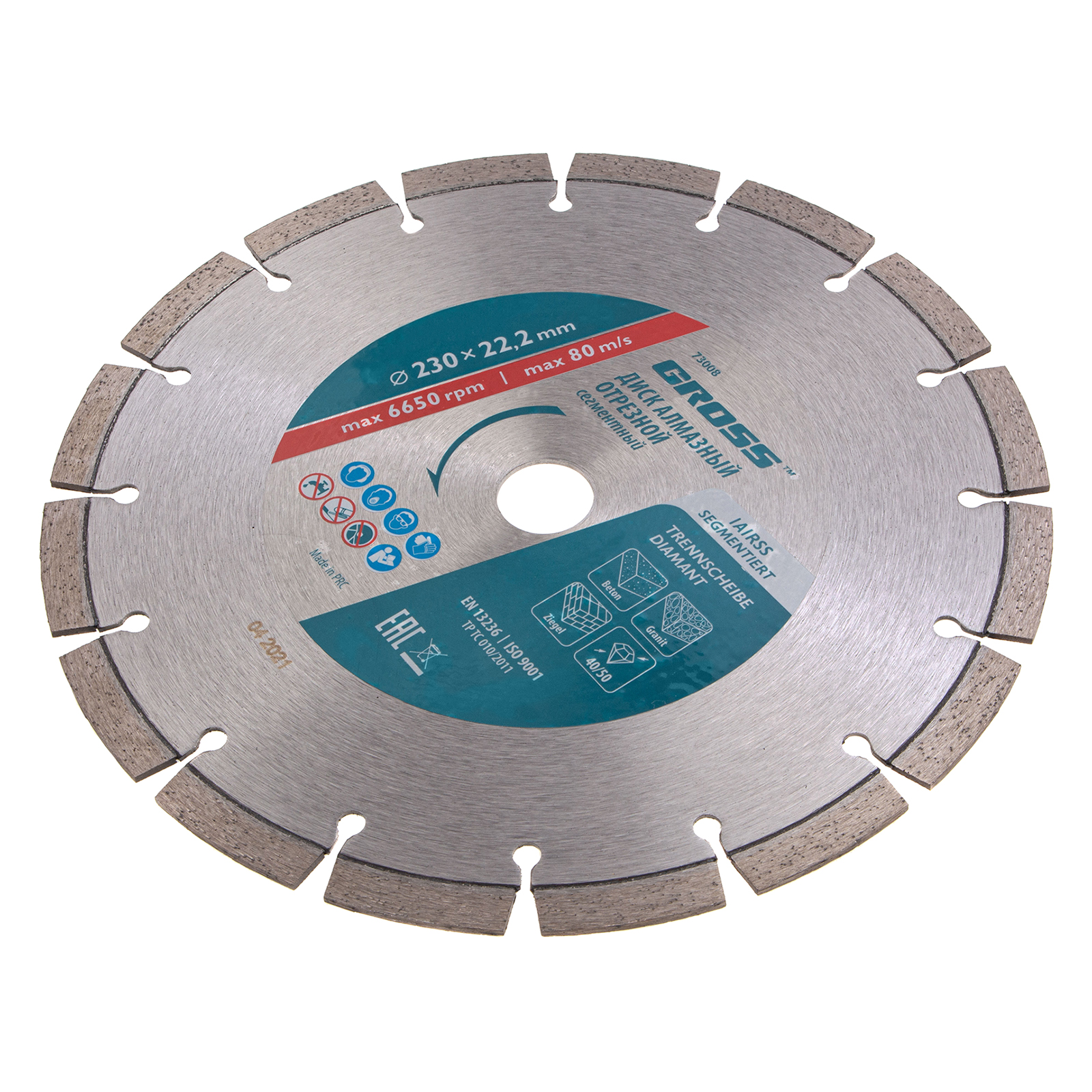 Алмазный диск Gross 73008 диаметром 230 х 22,2 мм, с лазерной приваркой сегментов, предназначен для сухой резки бетона, в том числе свежего, кирпича, песчаника и гранита. Посадочный диаметр 22,2 мм позволяет использовать диск в качестве оснастки для УШМ. Сегментное строение снижает риск деформации и обеспечивает быстрое сухое резание без необходимости водяного охлаждения. Благодаря оптимально подобранной связке диск выдерживает высокие нагрузки при выполнении большого объема работ. Подходит как для интенсивного бытового, так и для профессионального применения.