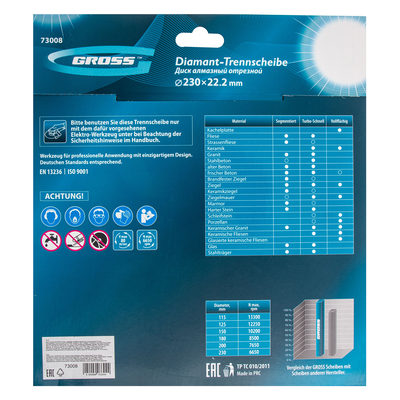Прочность — диск из стали 65Mn способен быстро резать различные материалы без риска деформации.