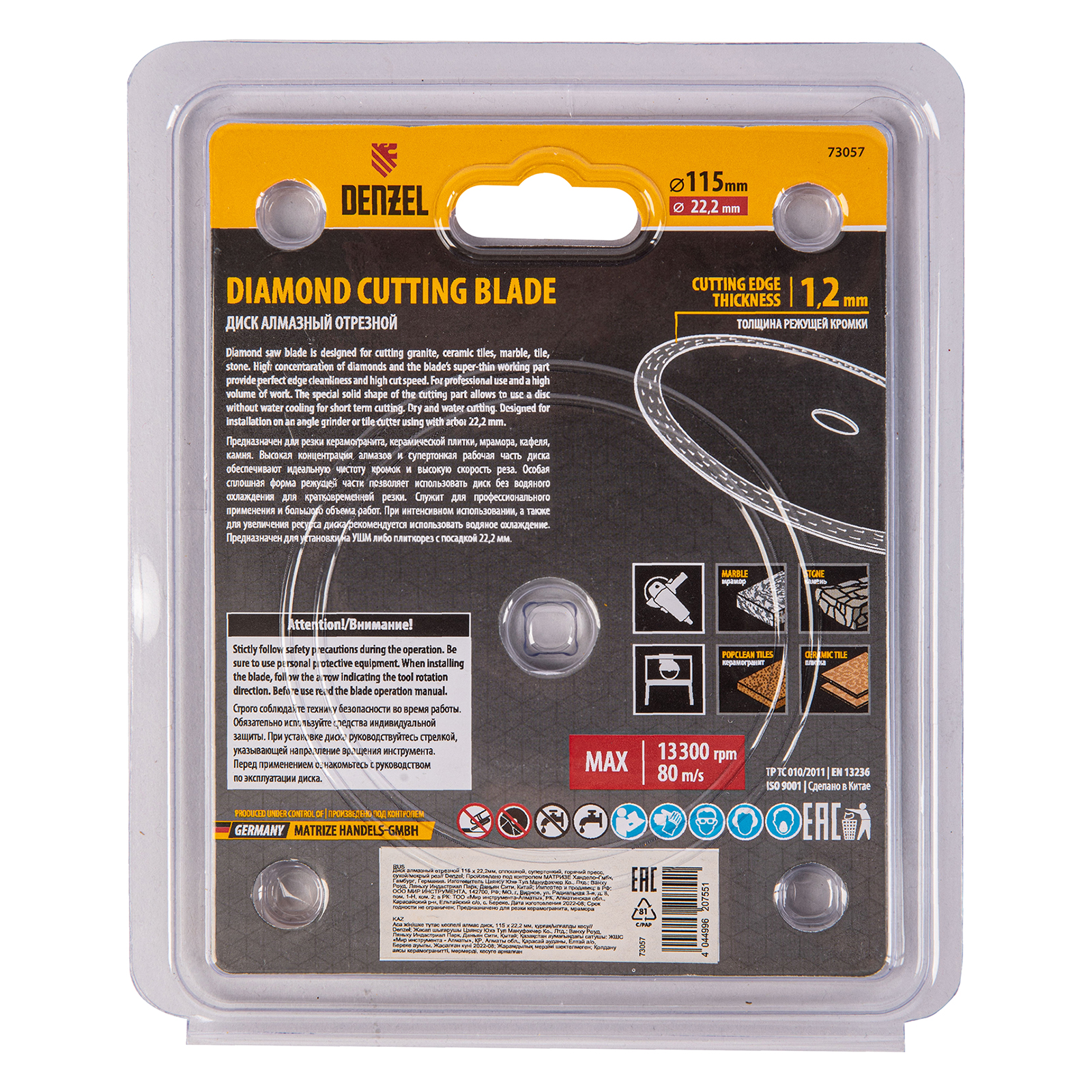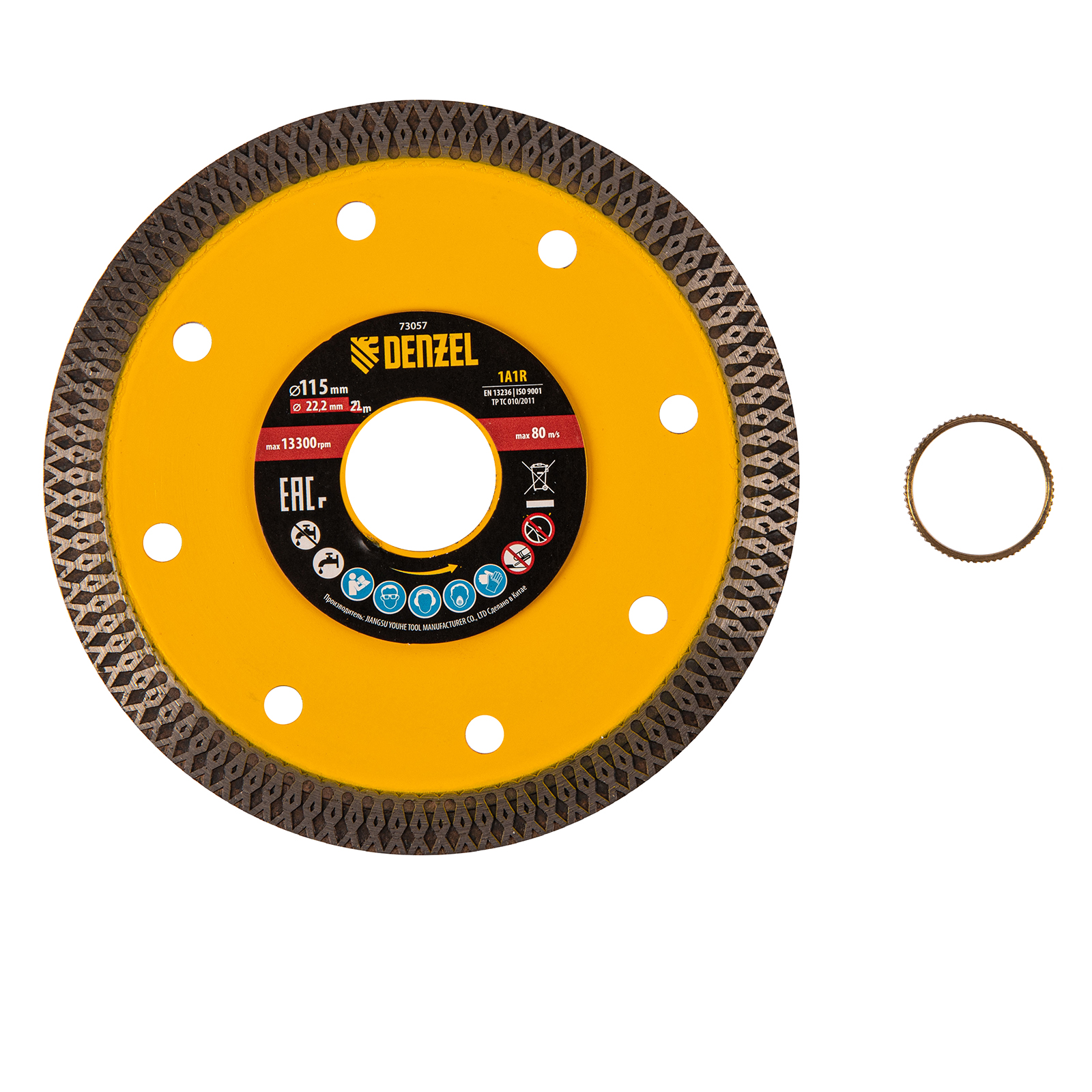Сплошной отрезной алмазный диск Denzel 73057 диаметром 115 x 22,2 мм, супертонкий, изготовлен по технологии горячего прессования и предназначен для сухого и мокрого реза керамогранита, керамической плитки, мрамора, кафеля, камня. Устанавливается на углошлифовальную машину или плиткорез с соответствующим посадочным диаметром, подходит для выполнения большого объема работ.