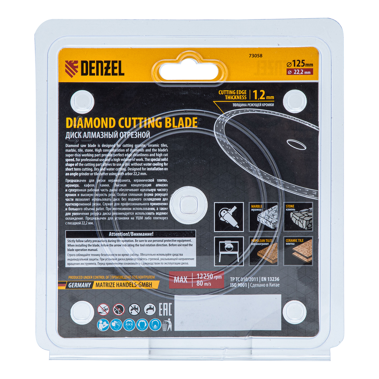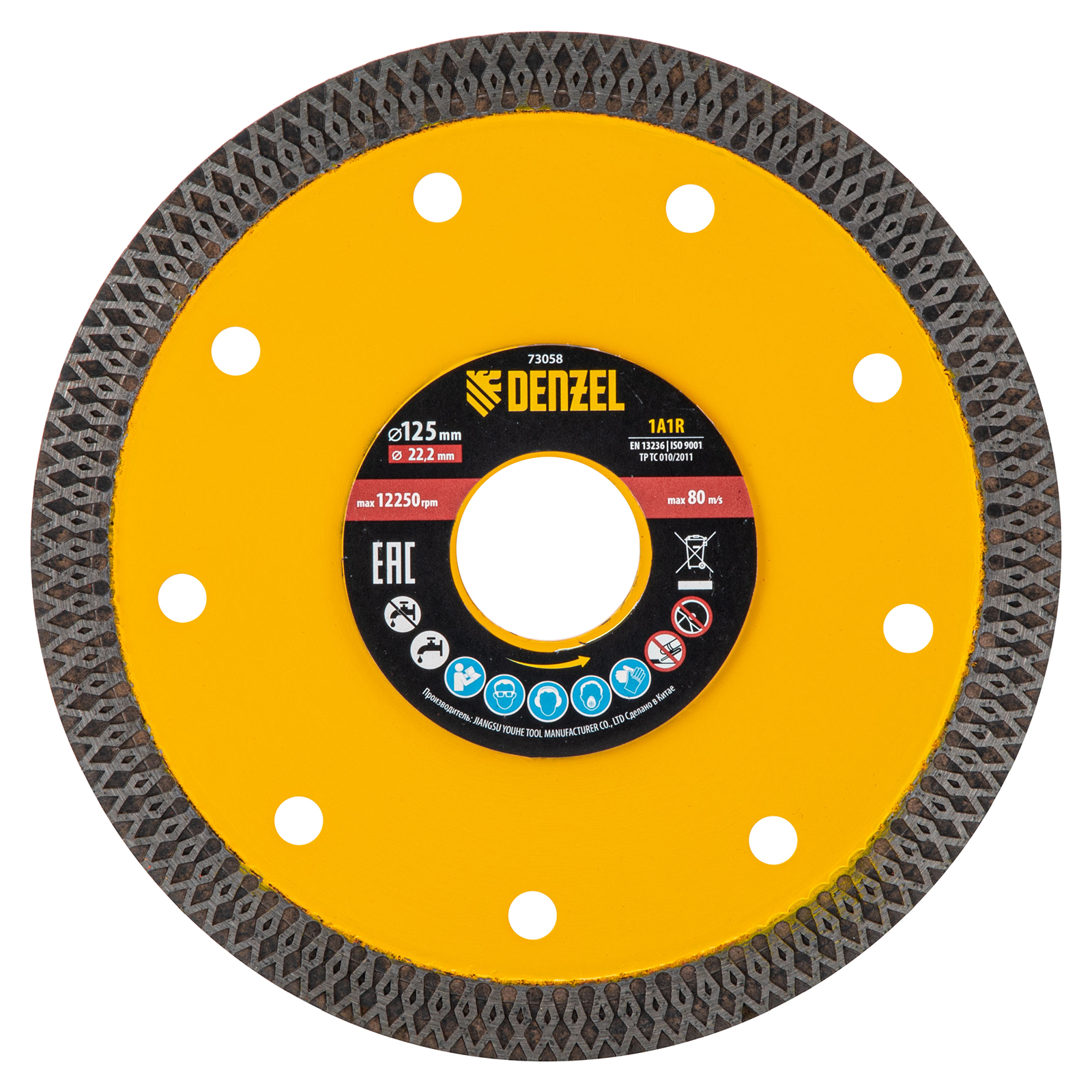 Алмазный диск ТМ Denzel "Сплошной" арт 73058, ф125 х 22,2 мм, предназначен для резания мрамора, керамогранита и керамическую плитки, камня. Устанавливается на УШМ (болгарку) или плиткорез с посадочным диаметром 22,2 мм. Высокая концентрация алмазов и супертонкая рабочая часть диска обеспечивает идеальную частоту кромок и высокую скорость реза.Особая сплошная форма режущей части позволяет использовать диск без водяного охлаждения для кратковременного реза.Диск произведен по технологии горячего прессования с увеличенной шириной режущей кромки (10мм) подходит для профессионального использования и больших объемов работ. При интенсивной резке необходимо использовать водяное охлаждение.