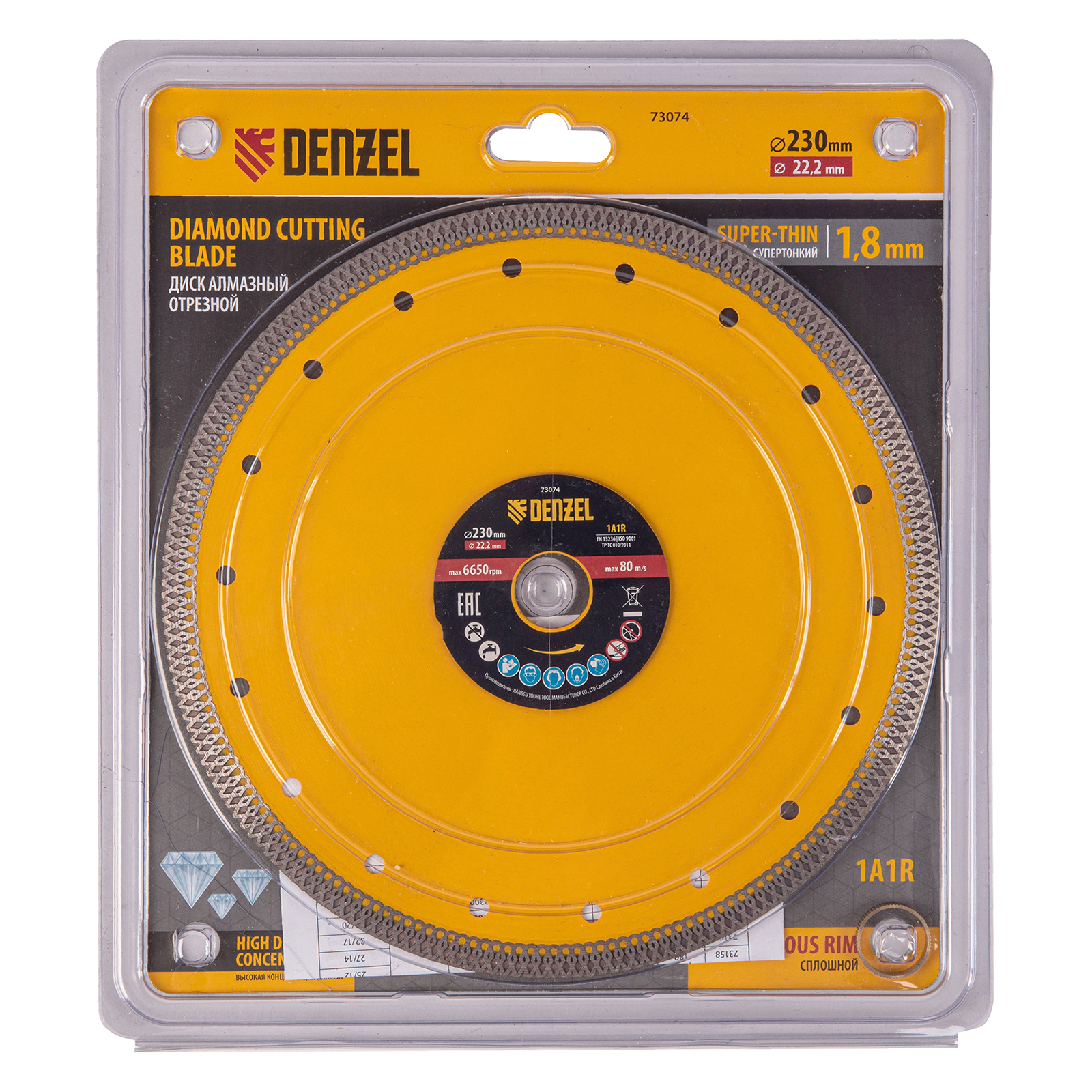 Диск алмазный отрезной 230 х 22,2мм, сплошной, супертонкий, горячий пресс, сухой/мокрый рез Denzel