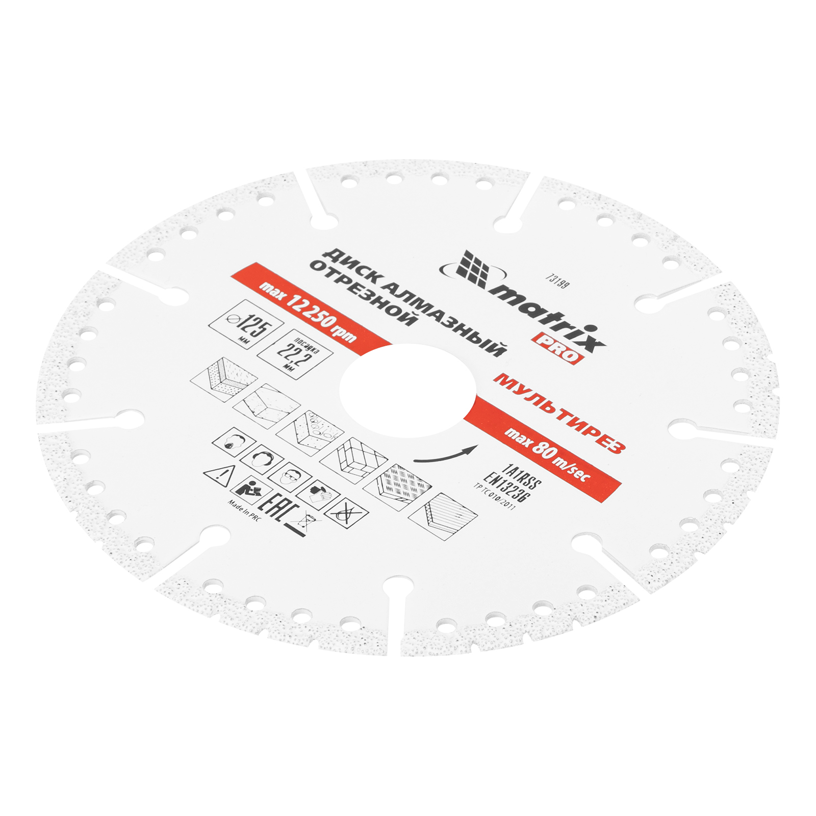 Алмазный отрезной диск Matrix PRO Мультирез 73199 диаметром 125 х 22,2 мм применяется для сухого и мокрого резания бетона любой твердости, железобетона, гранита, кирпича, металла, древесины, пластика и других материалов. Используется в качестве универсального режущего инструмента в профессиональной сфере, например, строительными, специальными службами, сотрудниками МЧС. К работе с диском необходимо приступать после ознакомления с руководством пользователя.