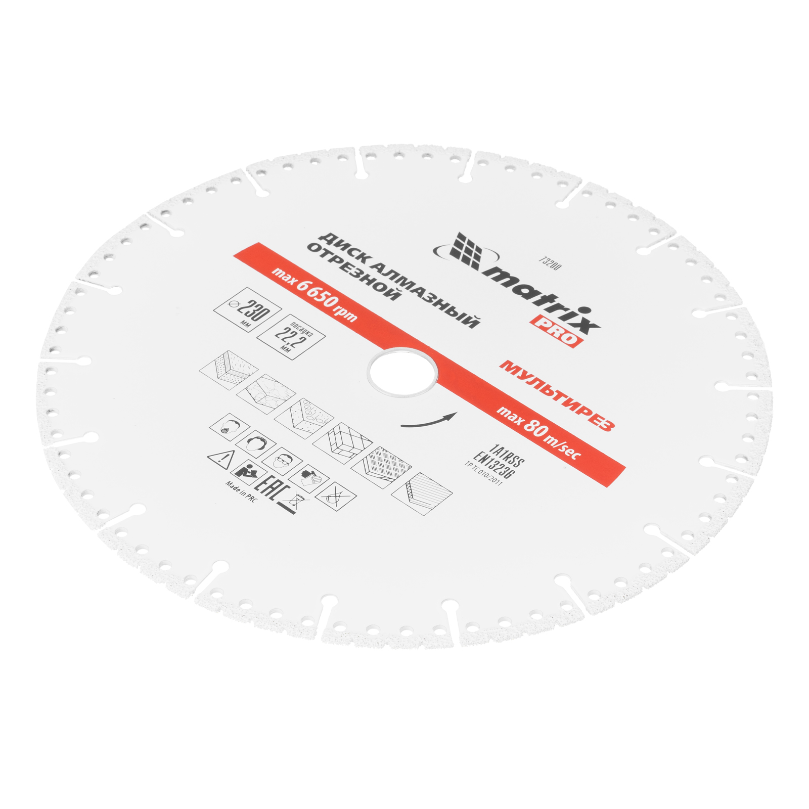 Алмазный отрезной диск Matrix PRO Мультирез 73200 диаметром 230 х 22,2 мм применяется для сухого и мокрого резания бетона любой твердости, железобетона, гранита, кирпича, металла, древесины, пластика и других материалов. Используется в качестве универсального режущего инструмента в профессиональной сфере, например, строительными, специальными службами, сотрудниками МЧС. К работе с диском необходимо приступать после ознакомления с руководством пользователя.