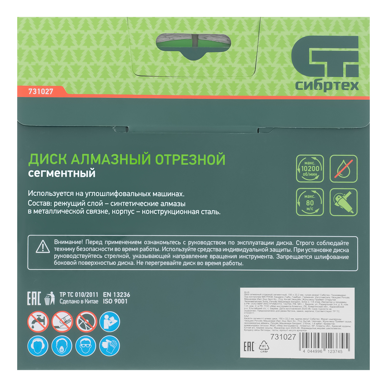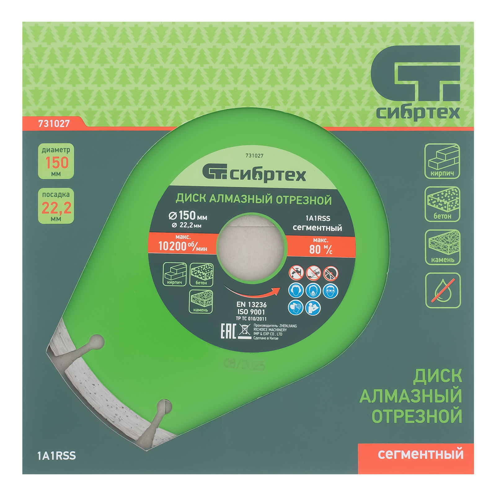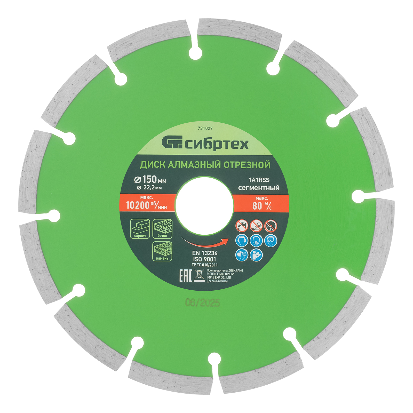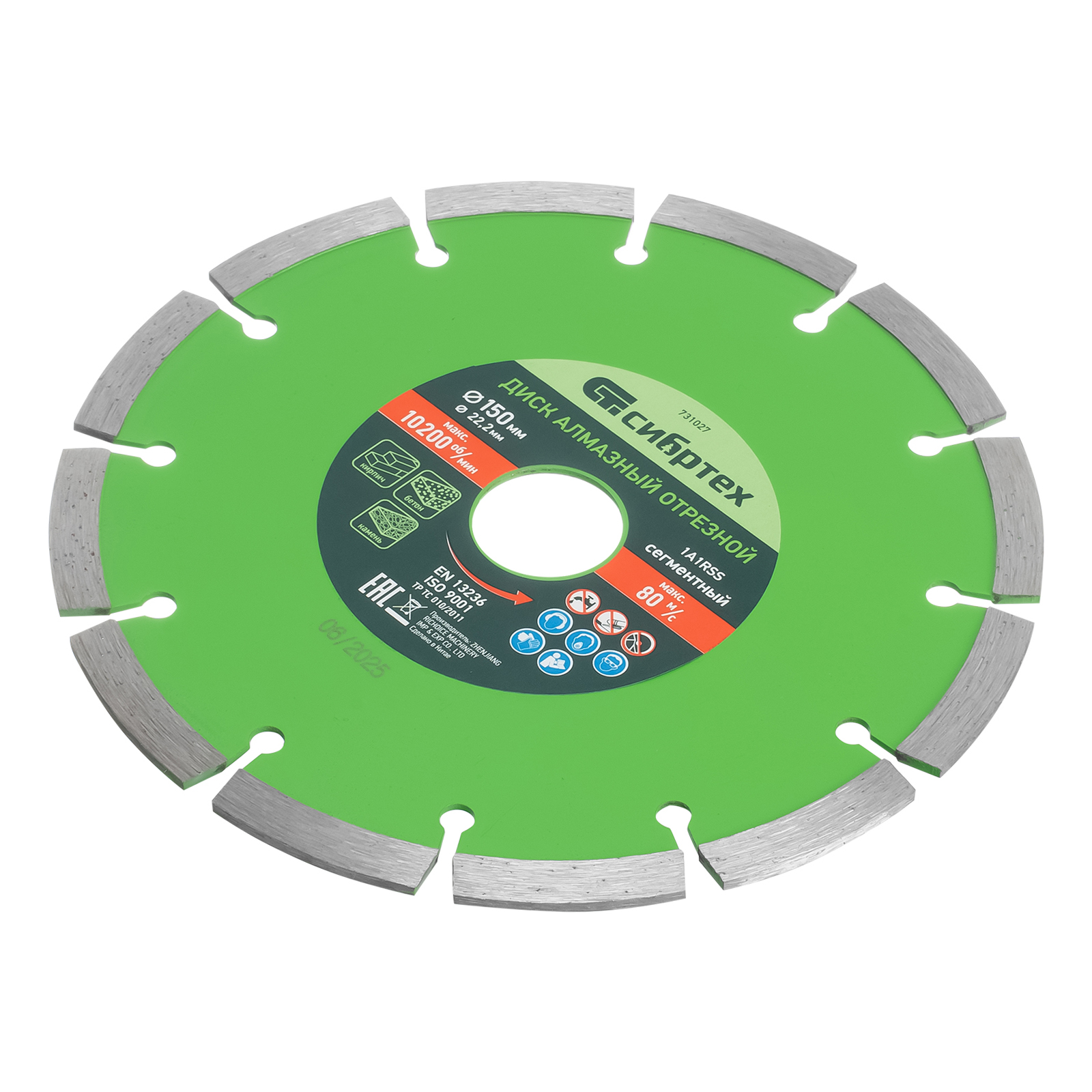 Сегментный отрезной алмазный диск Сибртех 731027 диаметром 150 х 22,2 мм применяется для сухой резки бетона, камня, шлакоблока, тротуарной плитки и кирпича. Устанавливается на углошлифовальную машину с посадочным диаметром 22,2 мм. Подходит для интенсивной работы, оптимален для решения бытовых задач.