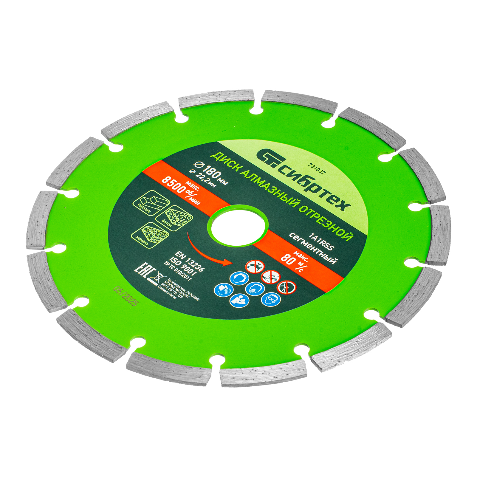 Сегментный отрезной алмазный диск Сибртех 731037 диаметром 180 х 22,2 мм применяется для сухой резки бетона, камня, шлакоблока, тротуарной плитки и кирпича. Устанавливается на углошлифовальную машину с посадочным диаметром 22,2 мм. Подходит для интенсивной работы, оптимален для решения бытовых задач.
