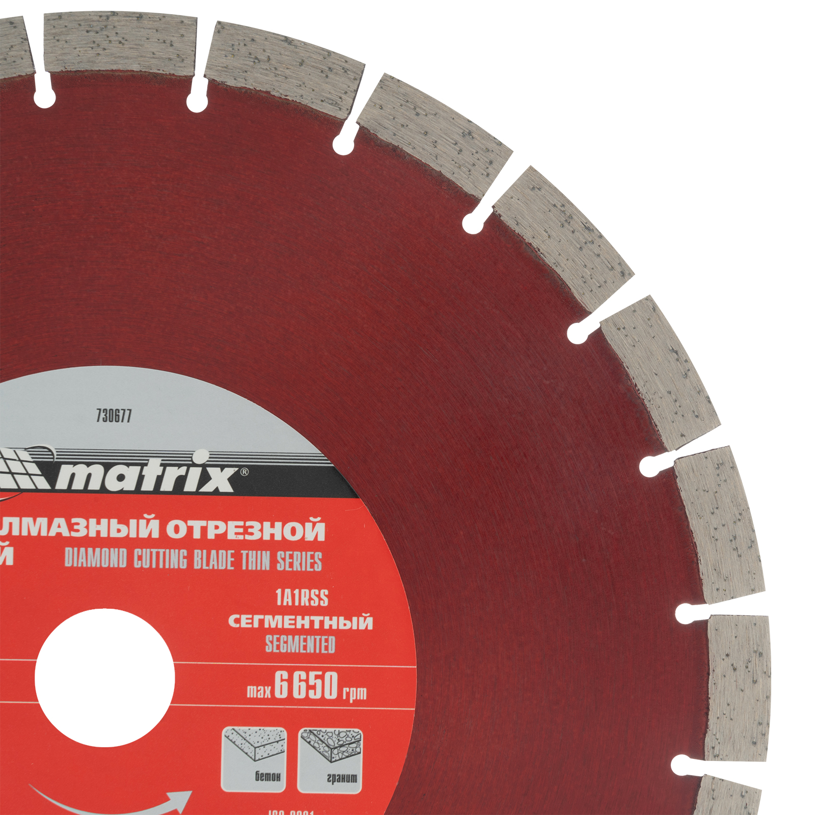 Отрезной сегментный алмазный диск Matrix Professional 730677 диаметром 230 х 22,2 мм, с тонким корпусом, позволяет проводить сухую резку свежего и старого бетона, камня, гранита, шлакоблока, тротуарной плитки, песчаника и кирпича с помощью УШМ. Подходит для частного и профессионального использования. Благодаря тонкому корпусу диска нагрузка на инструмент снижена, что позволяет ускорить рабочий процесс на 20%.