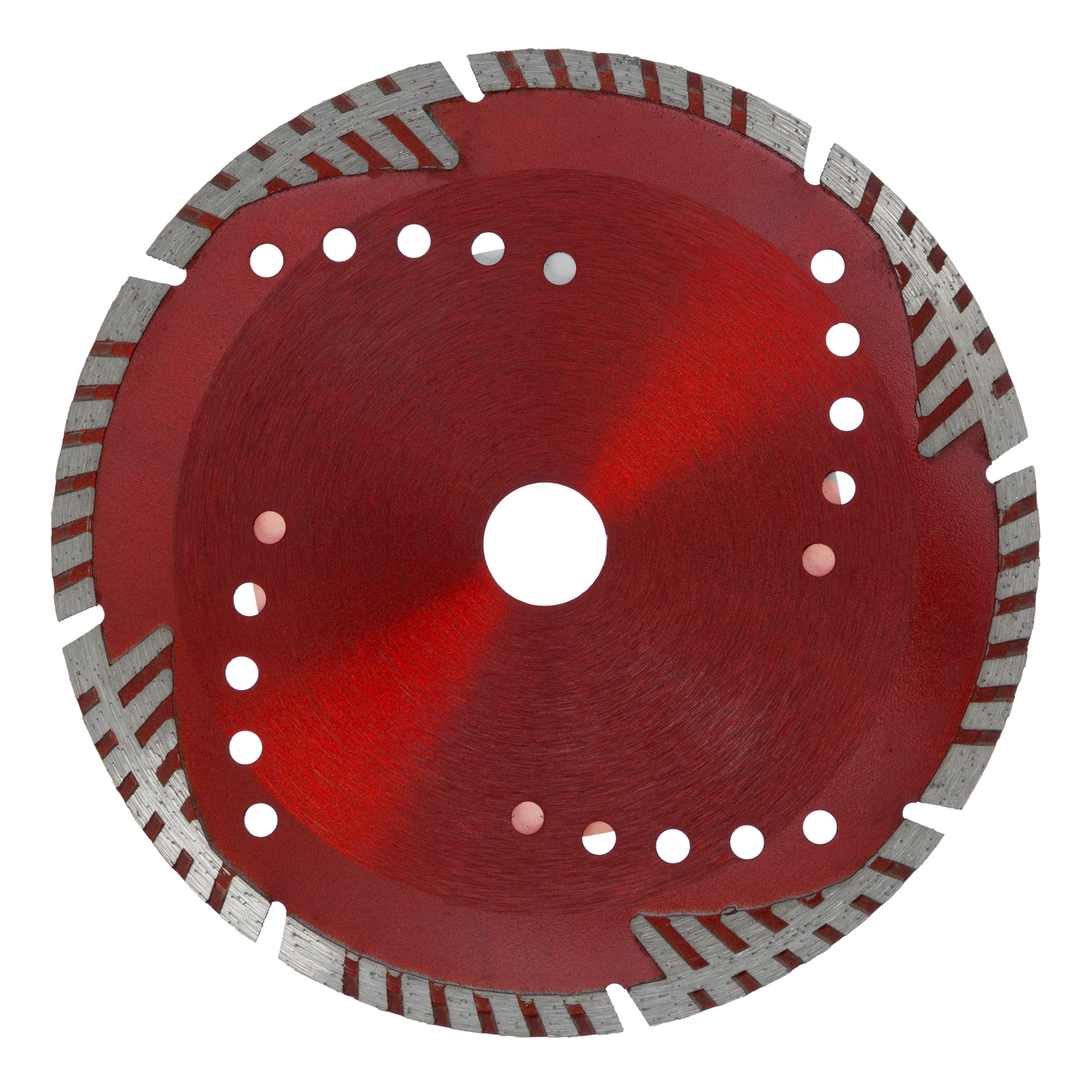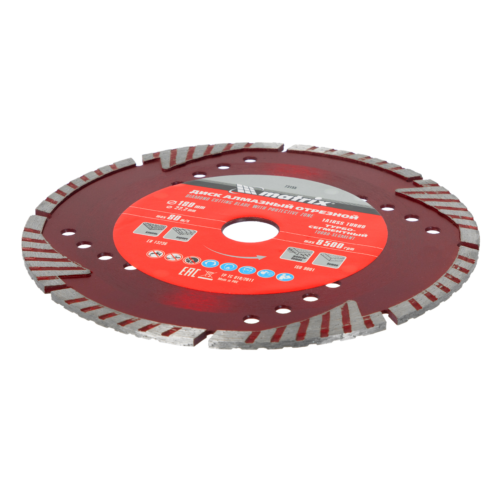 Алмазный отрезной сегментный диск Matrix 73155 с защитными секторами, диаметром 180 х 22,2 мм, применяется для сухой резки бетона разной прочности, камня, кирпича, шлакоблока и тротуарной плитки. Используется как оснастка для углошлифовальных машин с соответствующим посадочным диаметром. Диск изготовлен методом холодного прессования и выдерживает повышенные нагрузки при прохождении арматуры в слабоармированном железобетоне.