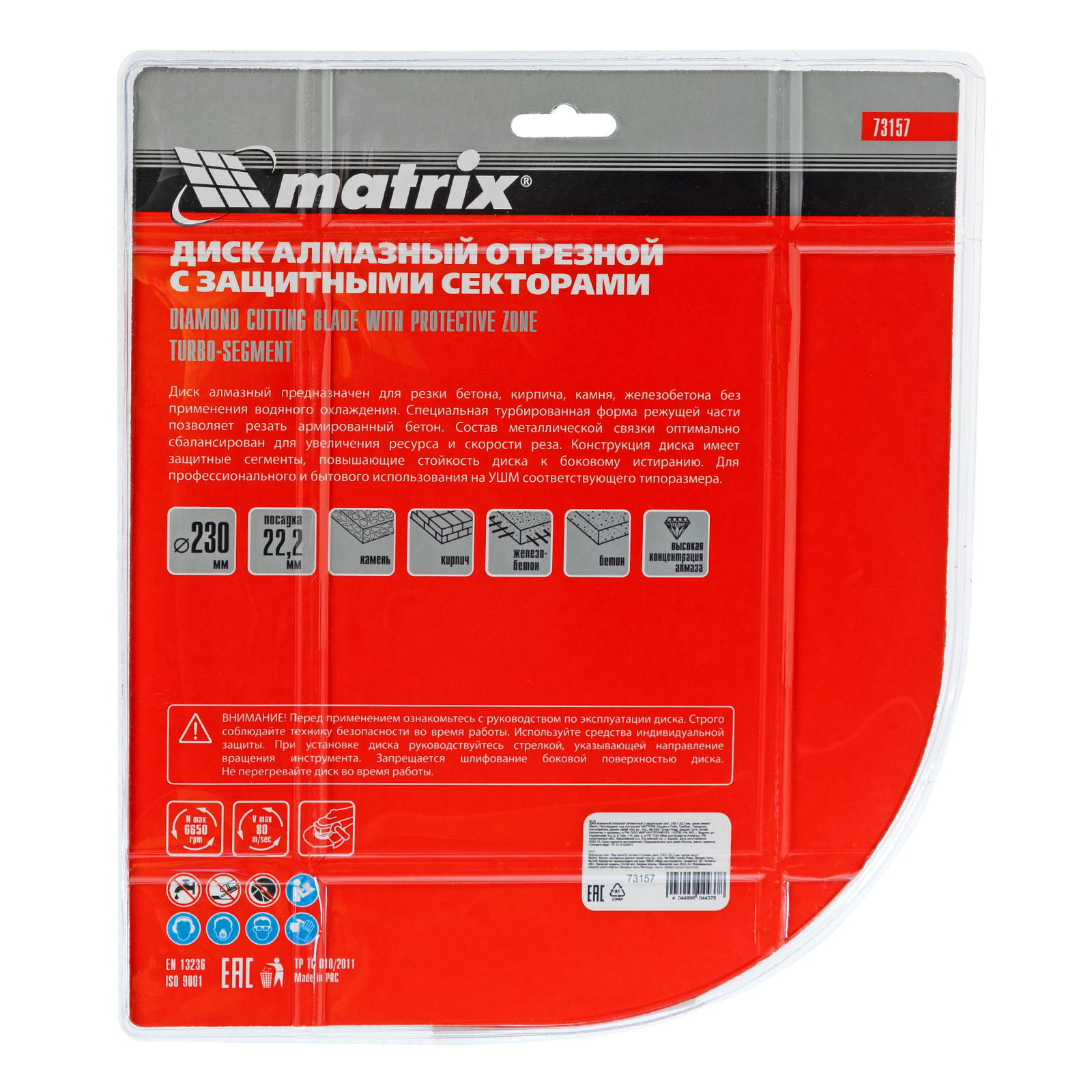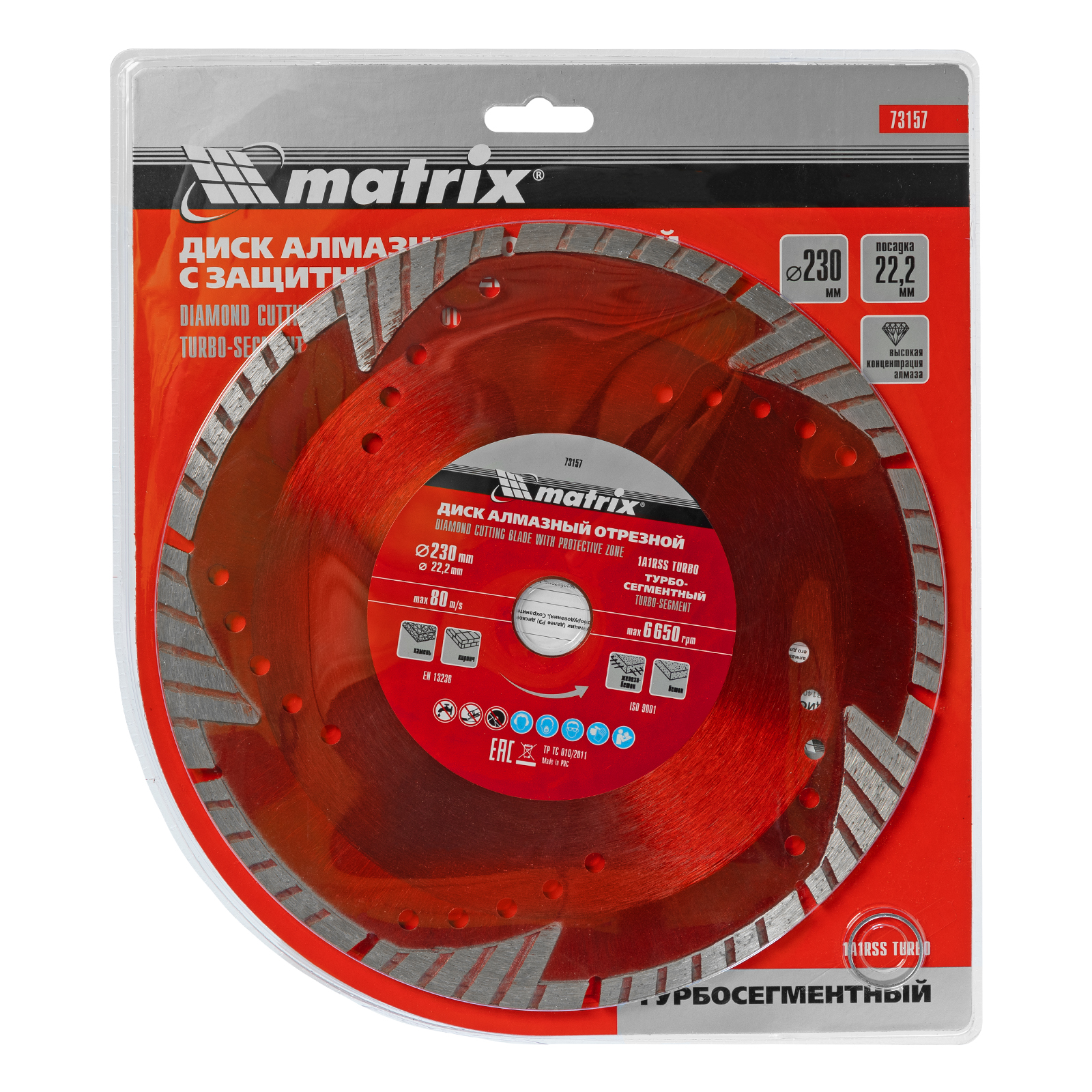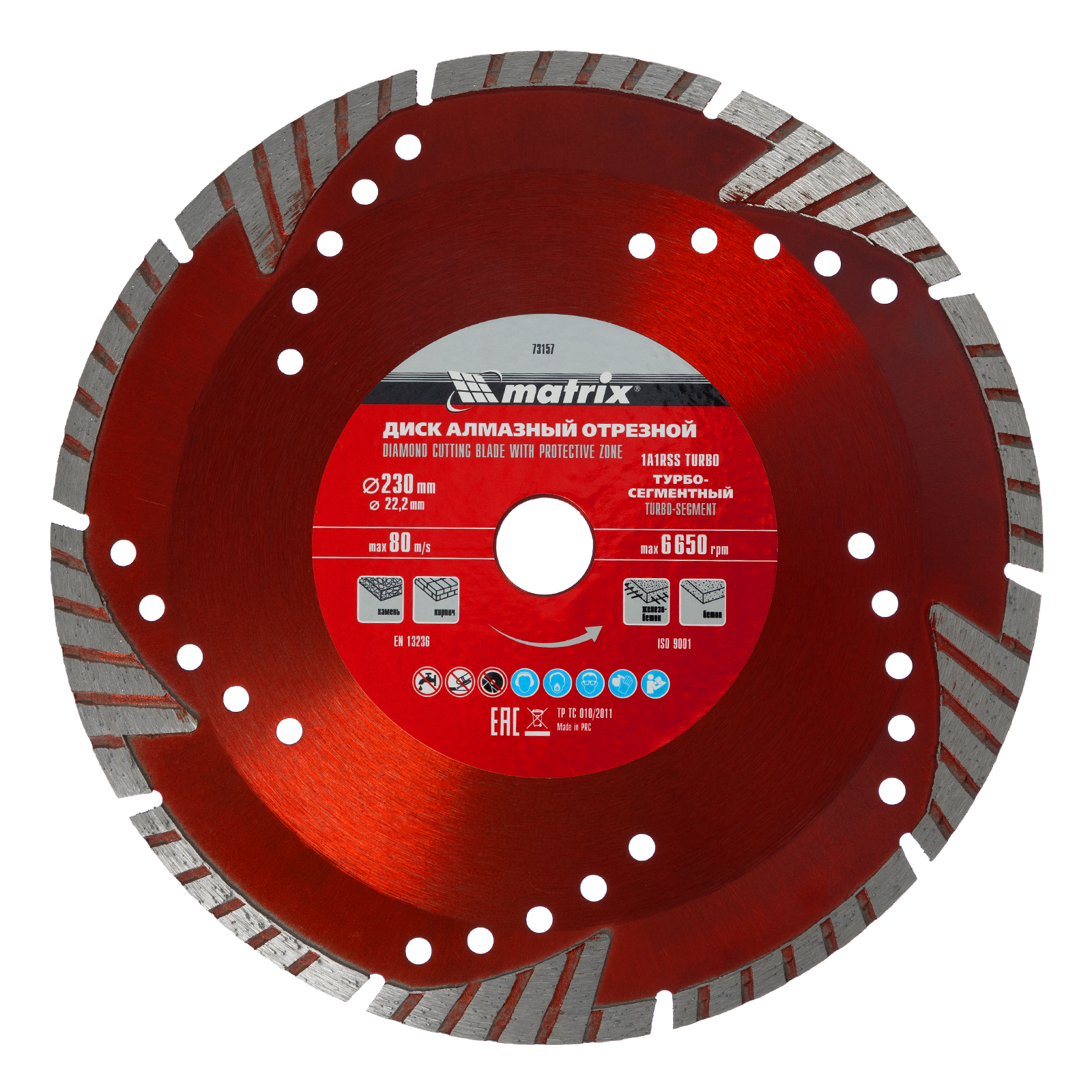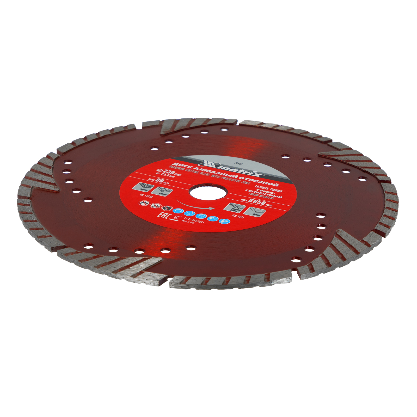 Алмазный отрезной сегментный диск Matrix 73157 с защитными секторами, диаметром 230 х 22,2 мм, применяется для сухой резки бетона разной прочности, камня, кирпича, шлакоблока и тротуарной плитки. Используется как оснастка для углошлифовальных машин с соответствующим посадочным диаметром. Диск изготовлен методом холодного прессования и выдерживает повышенные нагрузки при прохождении арматуры в слабоармированном железобетоне.