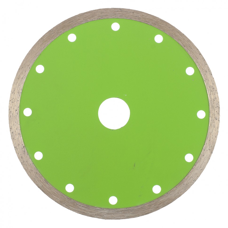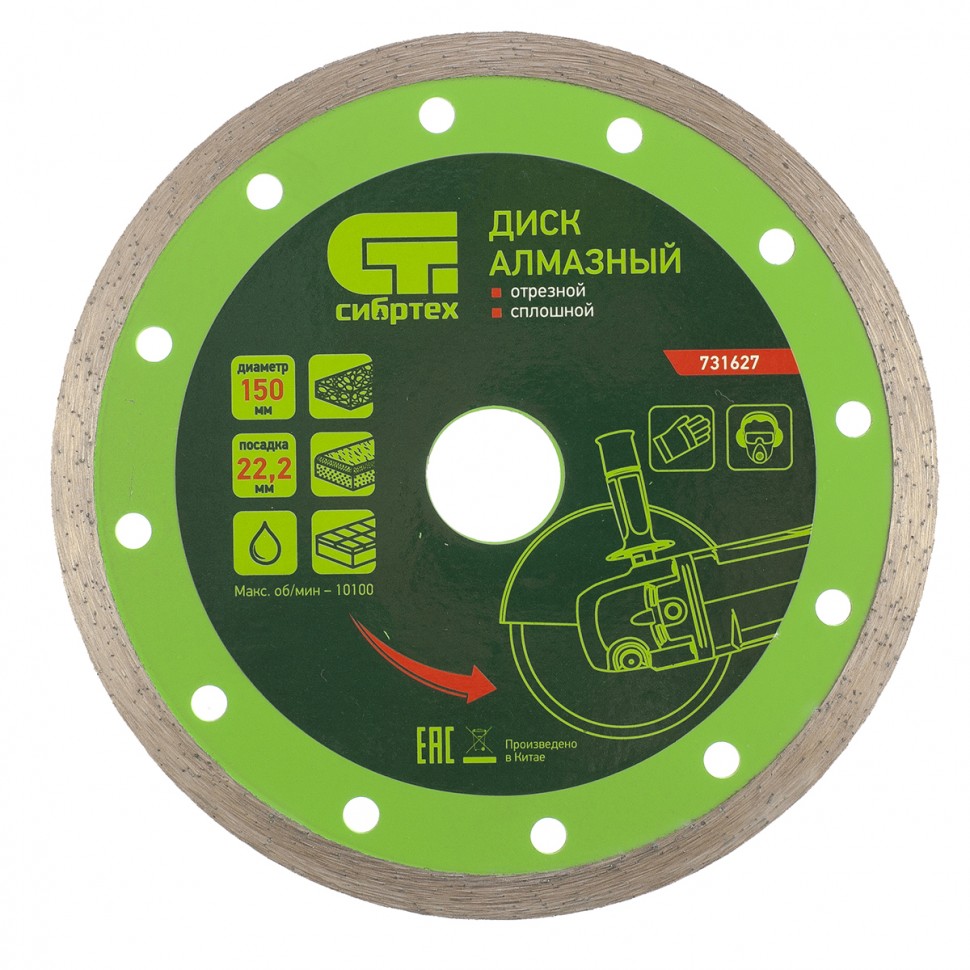 Алмазный отрезной сплошной диск Сибртех 731627 диаметром 150 х 22,2 мм применяется для мокрой резки керамогранитной, керамической плитки, а также мрамора и камня. Используется в качестве оснастки для болгарок и плиткорезов с посадочным диаметром 22,2 мм. Диск обладает хорошим рабочим ресурсом и рассчитан на долгую службу. Рез материалов необходимо проводить с использованием водяного охлаждения.