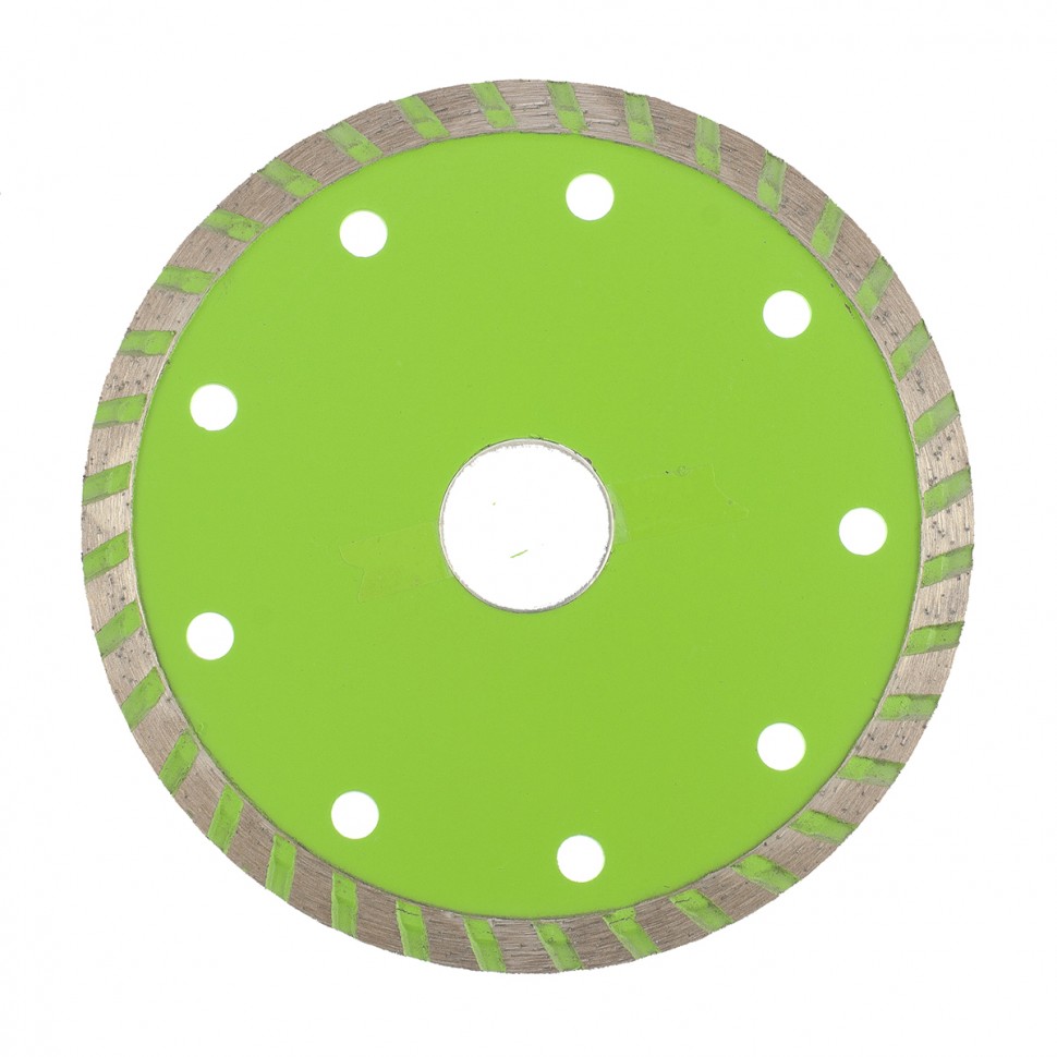 - Эффективный отвод тепла и шлама — благодаря турбированной рабочей части с перфорацией диск можно использовать для быстрой сухой резки без водяного охлаждения.