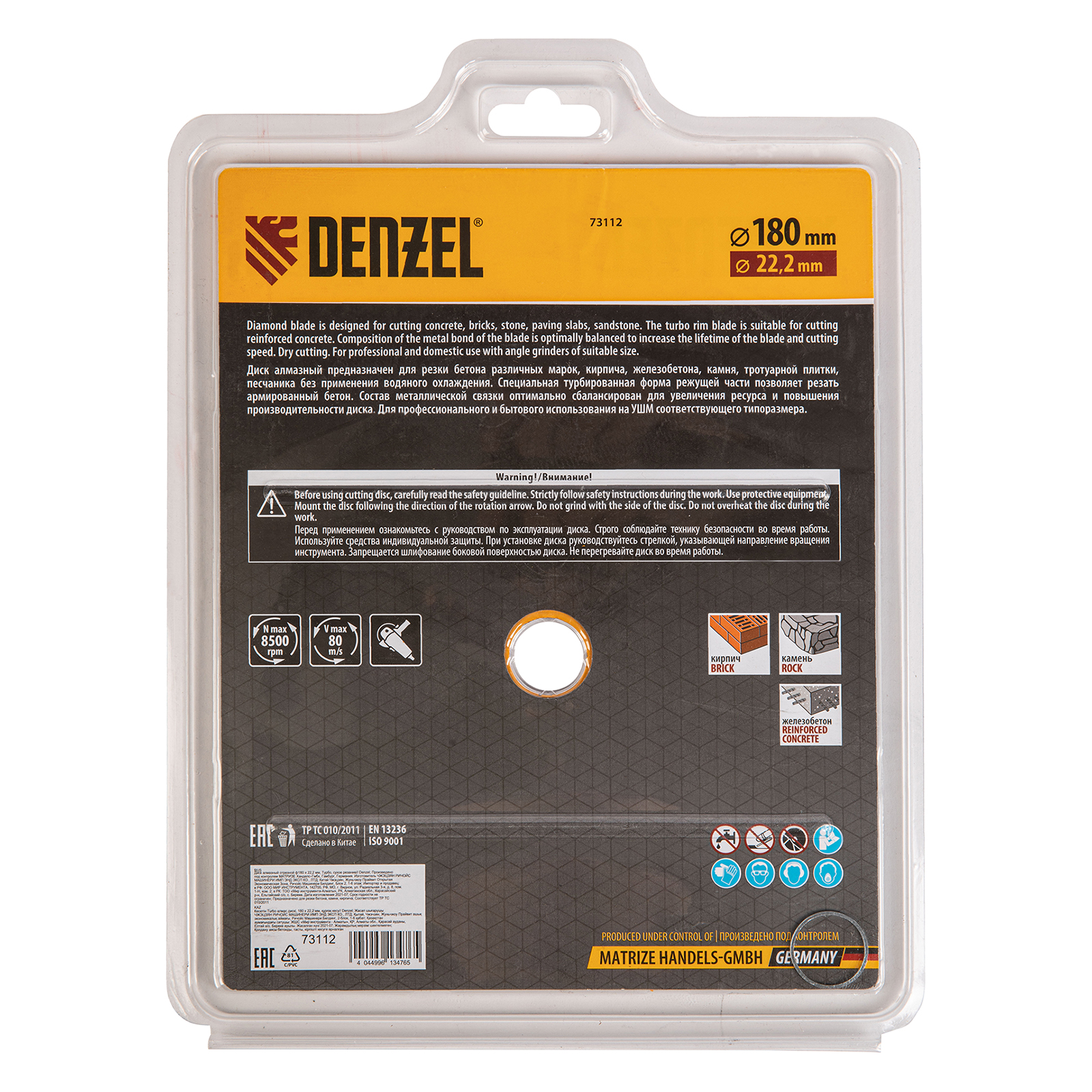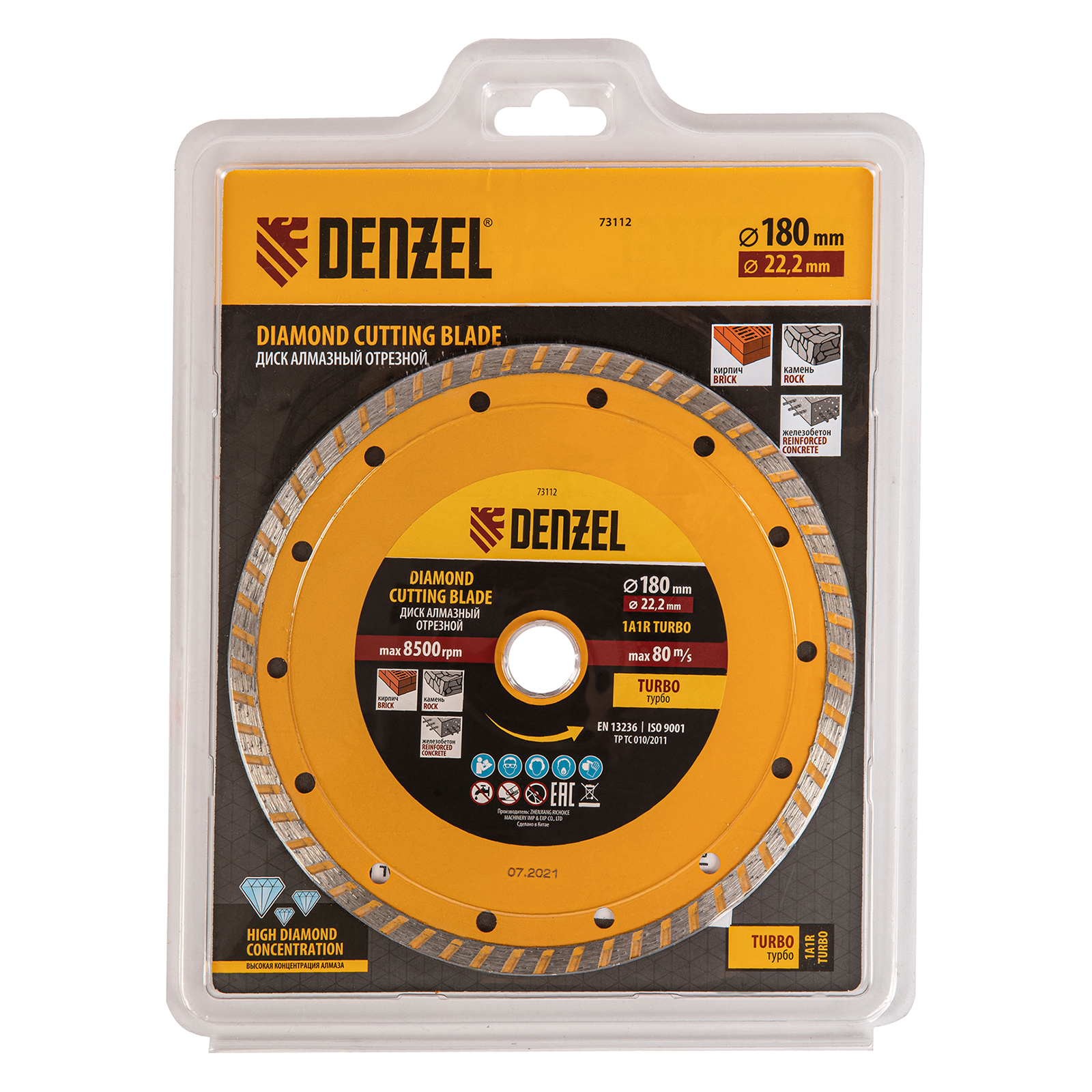 Отрезной алмазный диск Denzel Turbo 73112 диаметром 180 х 22,2 мм используется для сухой резки камня, кирпича, свежего и затвердевшего бетона, железобетона. Благодаря специальной форме испытывает уменьшенную нагрузку при резании материалов. Устанавливается на УШМ и применяется для проведения бытовых и профессиональных отрезных работ.