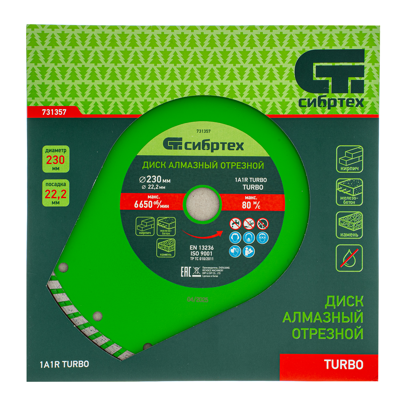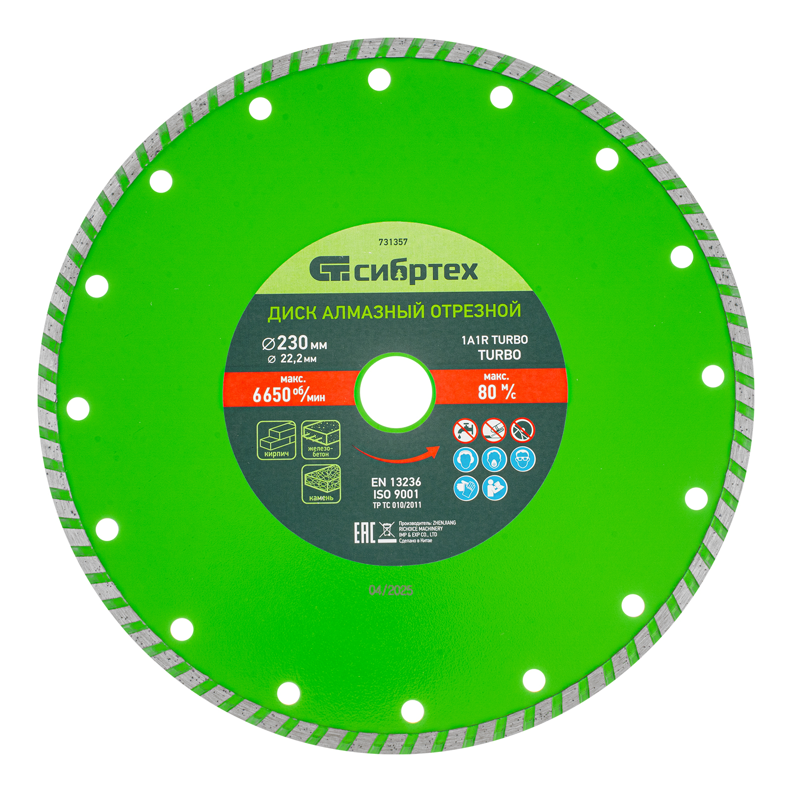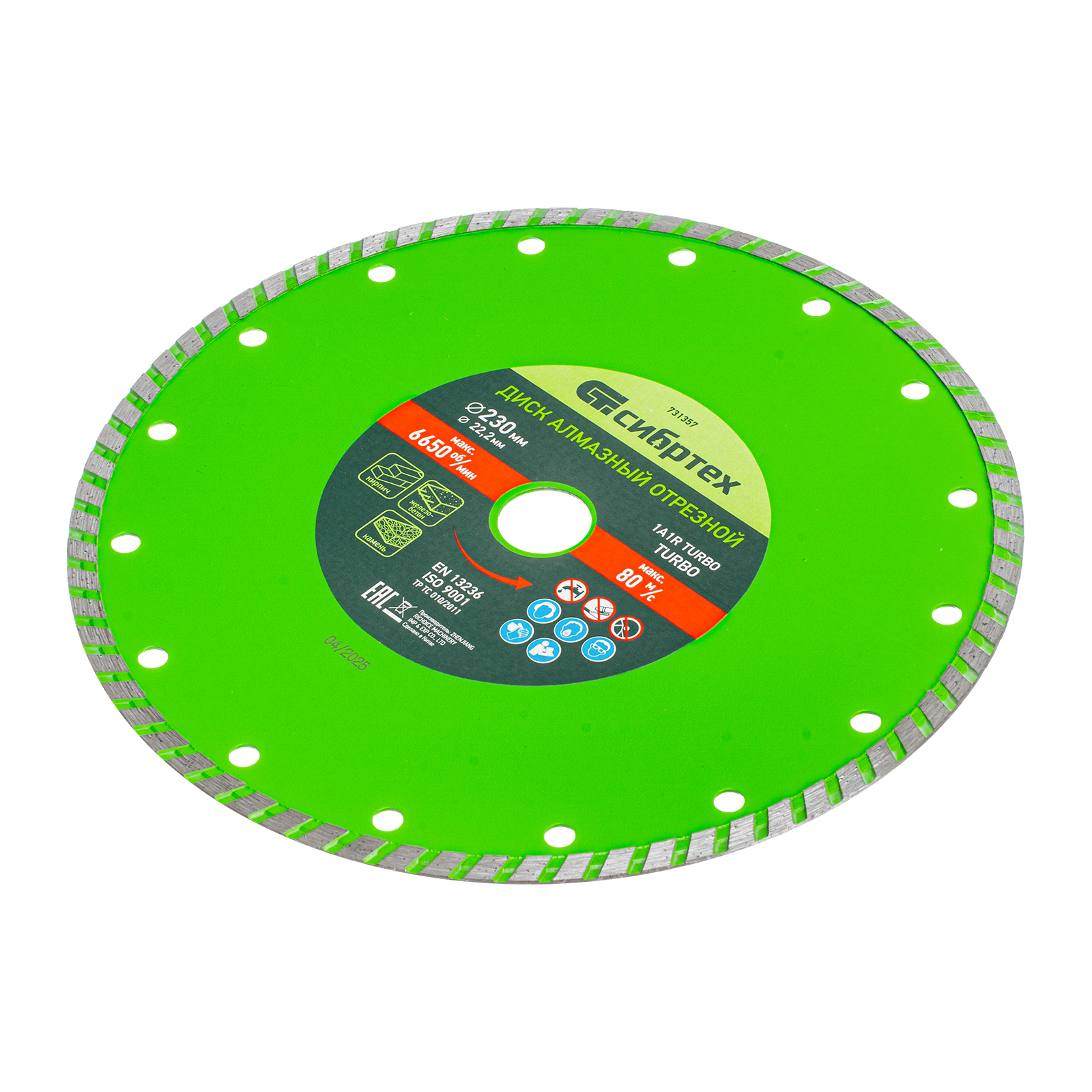 Алмазный отрезной диск Сибртех Turbo 731357 для сухой резки, диаметром 230 х 22,2 мм, устанавливается на углошлифовальную машину. Позволяет резать твердые материалы: бетон, железобетон, камень, песчаник. Диск предназначен для бытового использования.