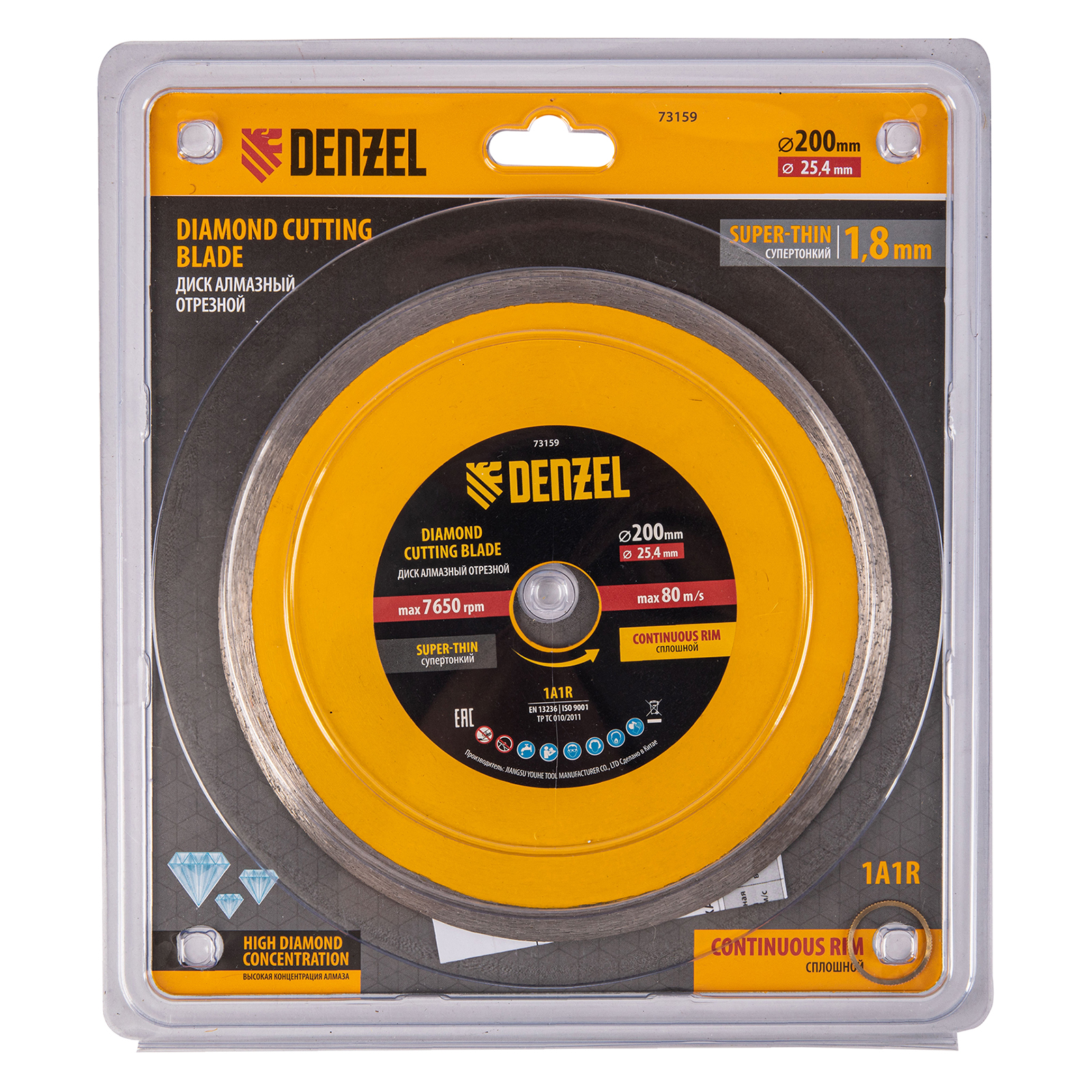 Диск алмазный сплошной, супертонкий, 200 х 25,4 мм, горячее прессование, мокрое резание Denzel