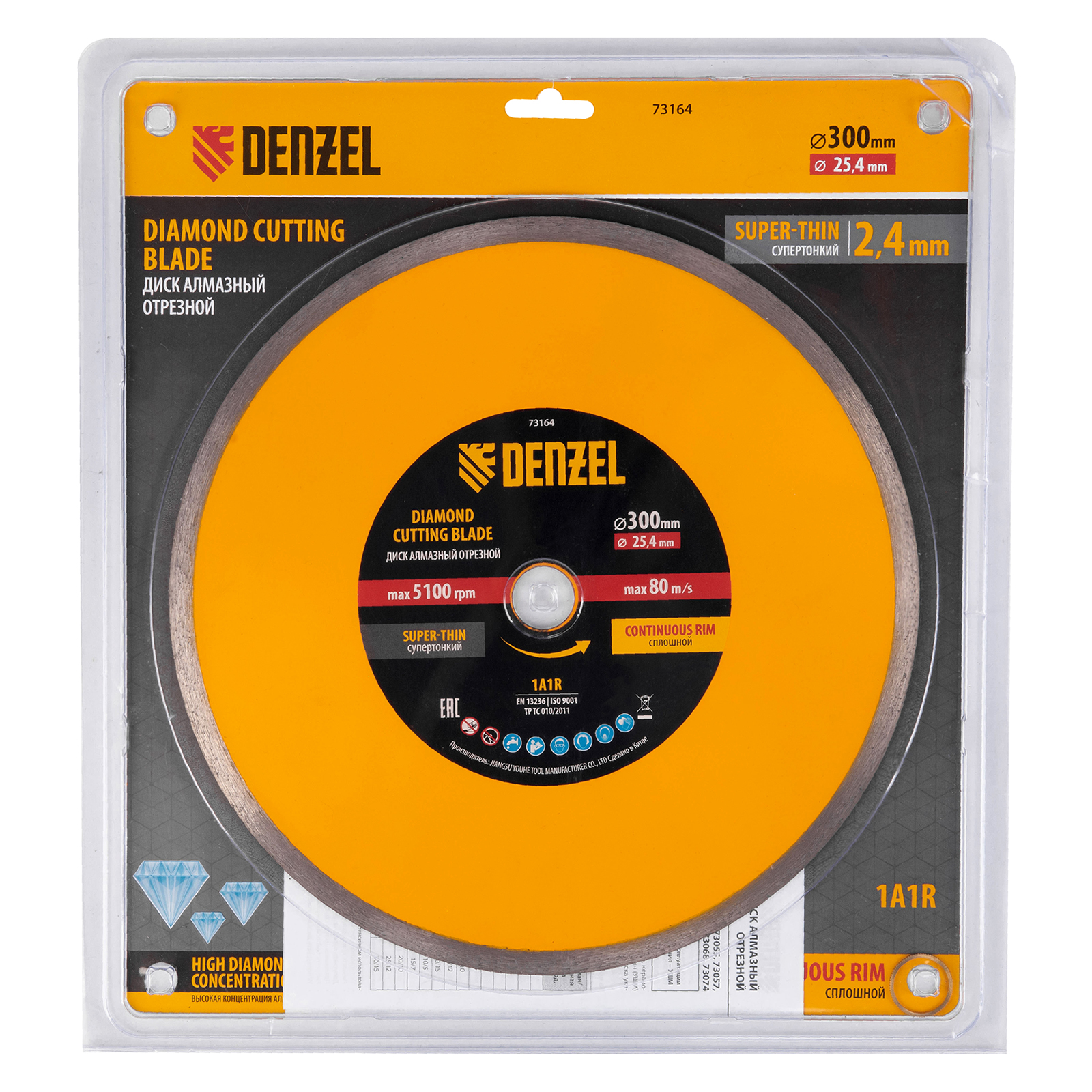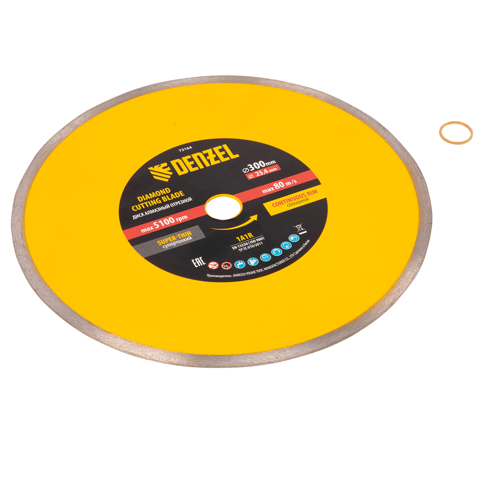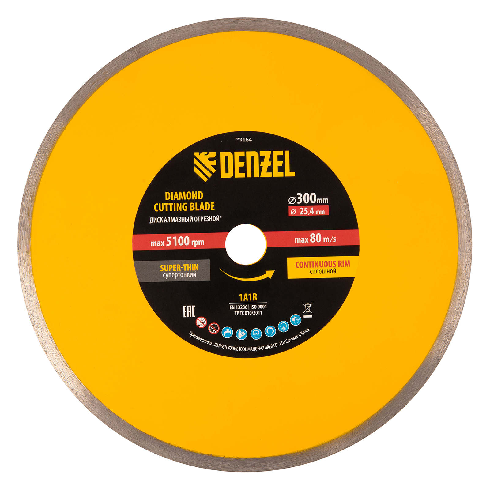 Диск алмазный сплошной, супертонкий, 300 х 25,4 мм, горячее прессование, мокрое резание Denzel