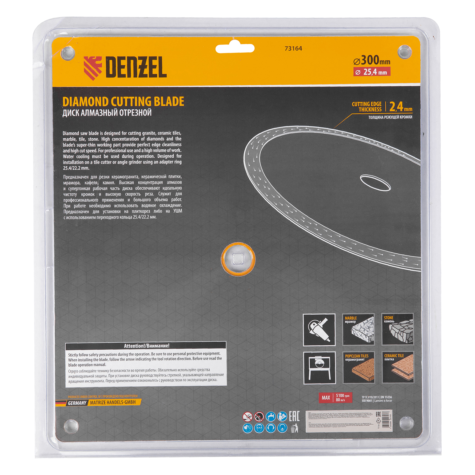 Алмазный диск ТМ Denzel "Сплошной" арт 73164, ф300 х 25,4 мм, предназначен для мокрого резания мрамора, керамогранита и керамическую плитки, камня. Устанавливается на плиткорез или УШМ (болгарку) с посадочным диаметром 25,4 мм. Высокая концентрация алмазов и супертонкая рабочая часть диска обеспечивает идеальную частоту кромок и высокую скорость реза.Диск произведен по технологии горячего прессования с увеличенной шириной режущей кромки (10мм) подходит для профессионального использования и больших объемов работ.