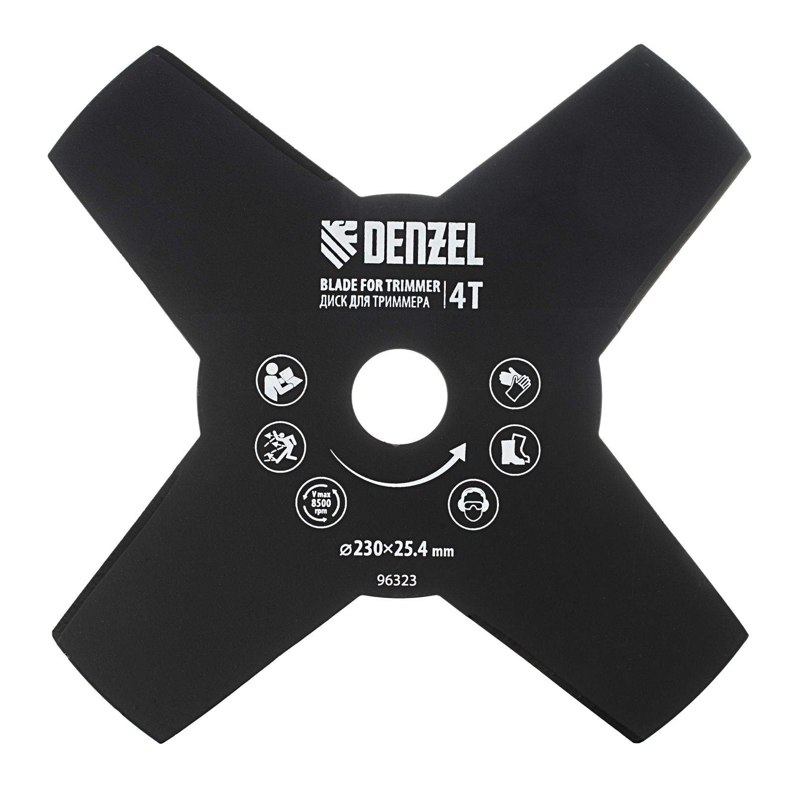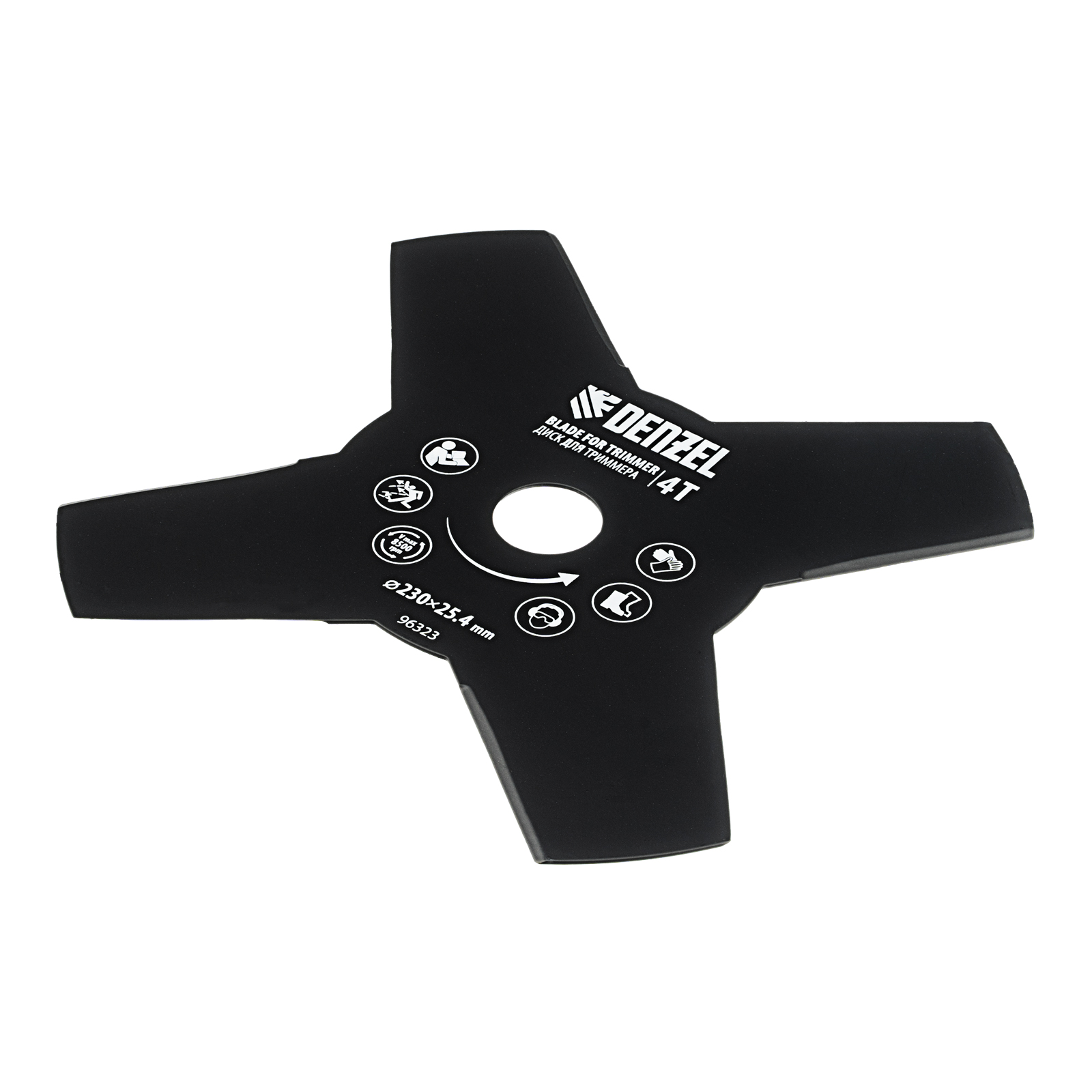 <p>Диск для триммера Denzel 96323 размером 230 х 25,4 мм, толщиной 1,6 мм, с 4 лезвиями, предназначен для скашивания травы различных типов, в том числе с жесткими стеблями (полыни, крапивы, лебеды). Рекомендован к использованию со всеми типами бензиновых триммеров, а также с электрическими триммерами мощностью не менее 1,0 кВт, например Denzel 96611 и 96612.</p><h2>Преимущества</h2><ul><li>Прочность и долговечность — диск изготовлен из стали и обработан порошковой краской для защиты от коррозии.</li><li>4 лезвия — диск аккуратно срезает траву, делая более удобной работу по заготовке сена.</li><li>Высокая производительность — лезвия с режущими кромками большой длины заточены с обеих сторон.</li></ul>
