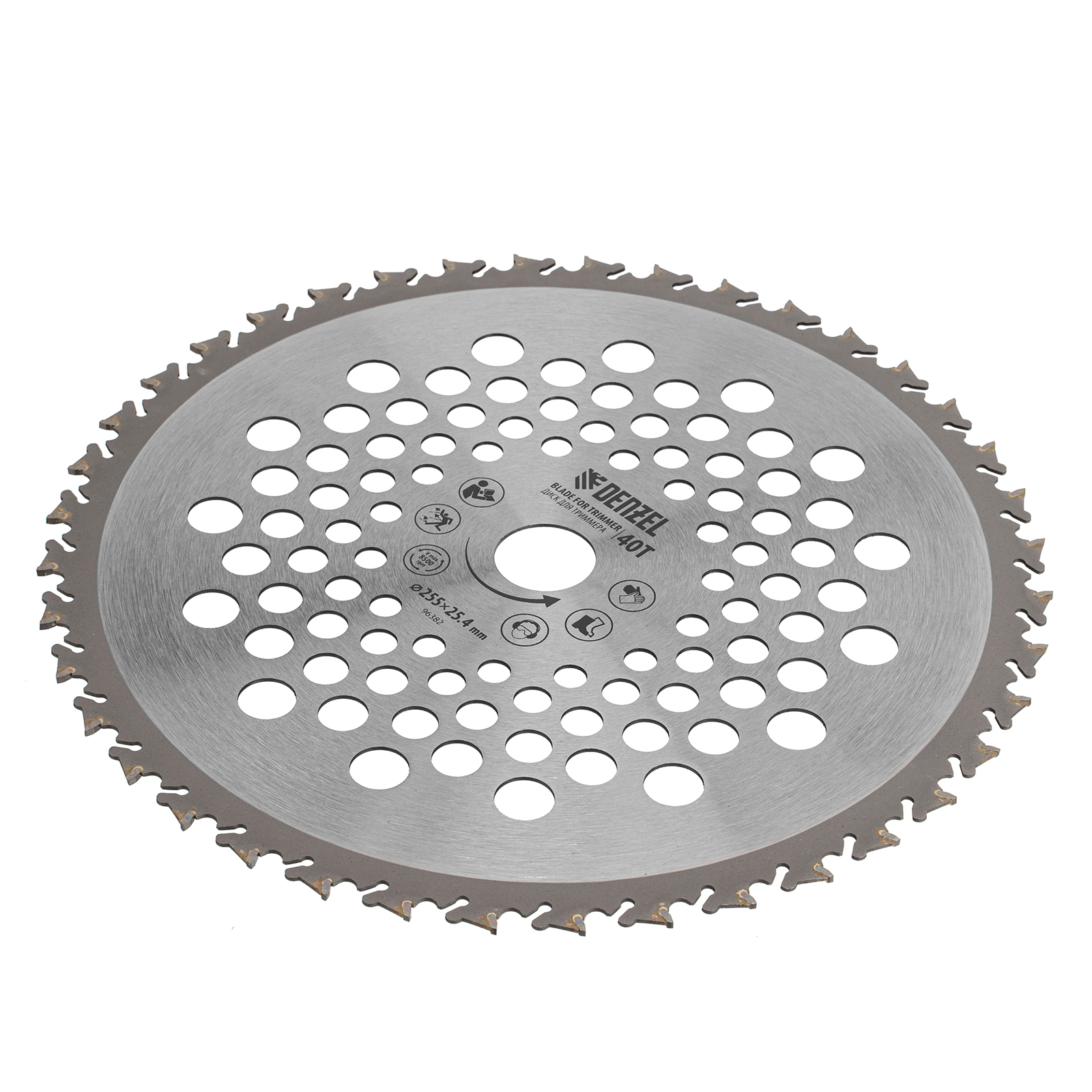 Диск для триммера Denzel 96382 с внешним диаметром 255 мм и посадочным — 25,4 мм, с 40 зубьями Anti-Kick, используется для скашивания жесткой травы, борщевика и других сорняков с толстыми стеблями, а также подпиливания кустарников и тонких деревьев. Оптимален для работы с мощными бензотриммерами. Будет полезен для расчистки территории и подготовки участка к вспашке и застройке.
