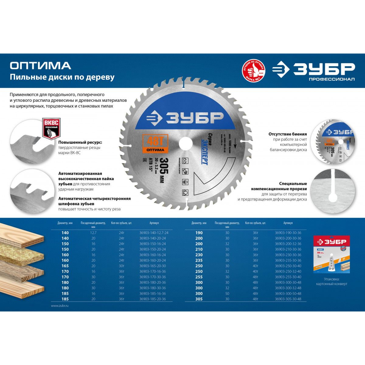 Диск пильный по дереву, ЗУБР Оптима - 1 шт;