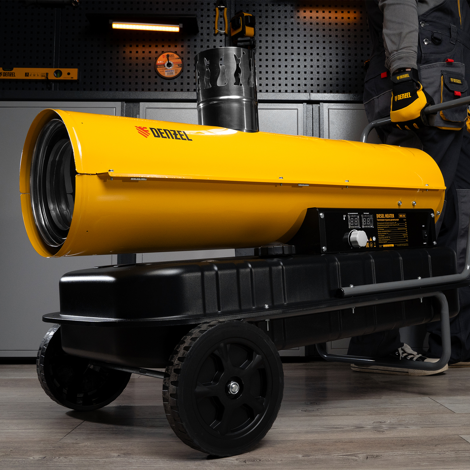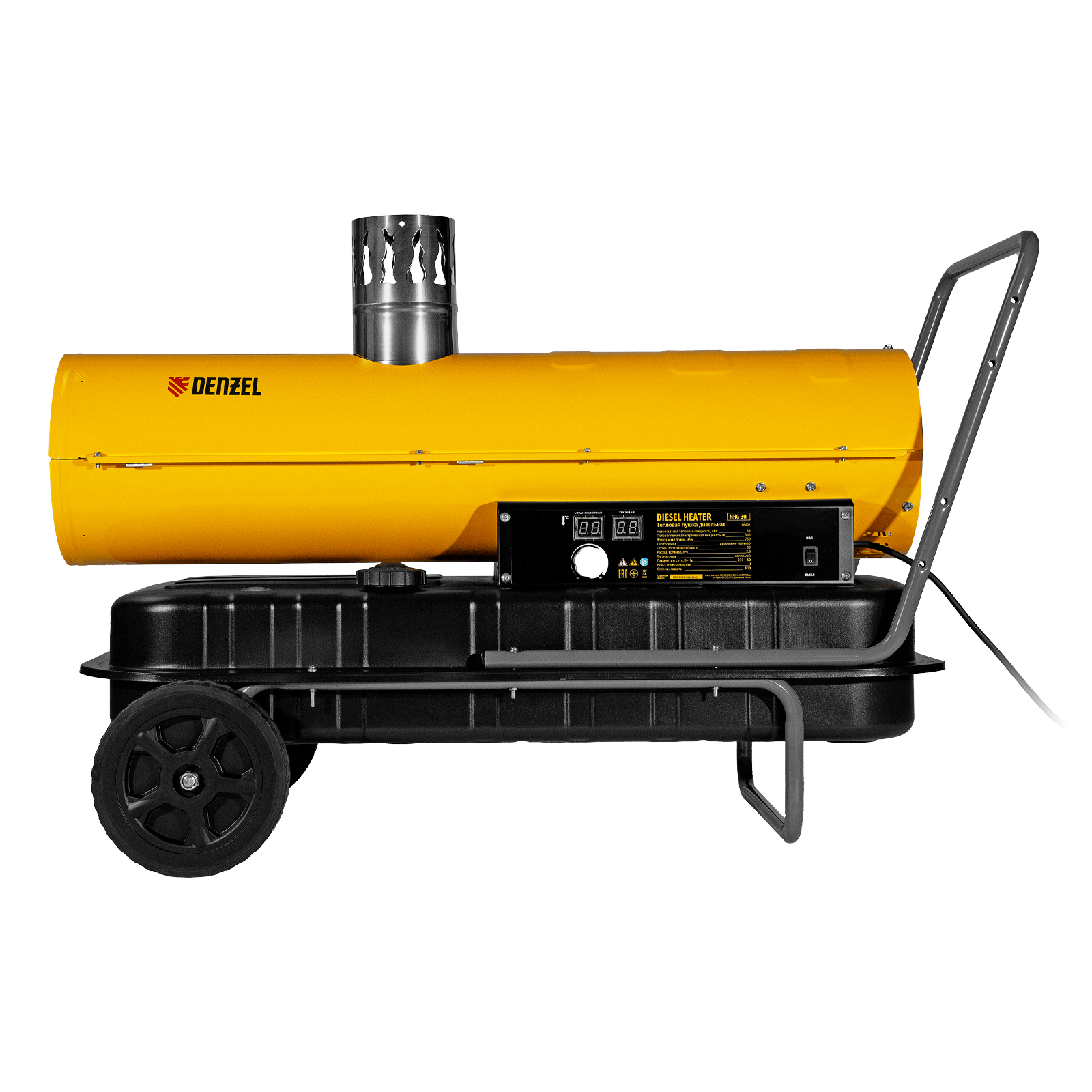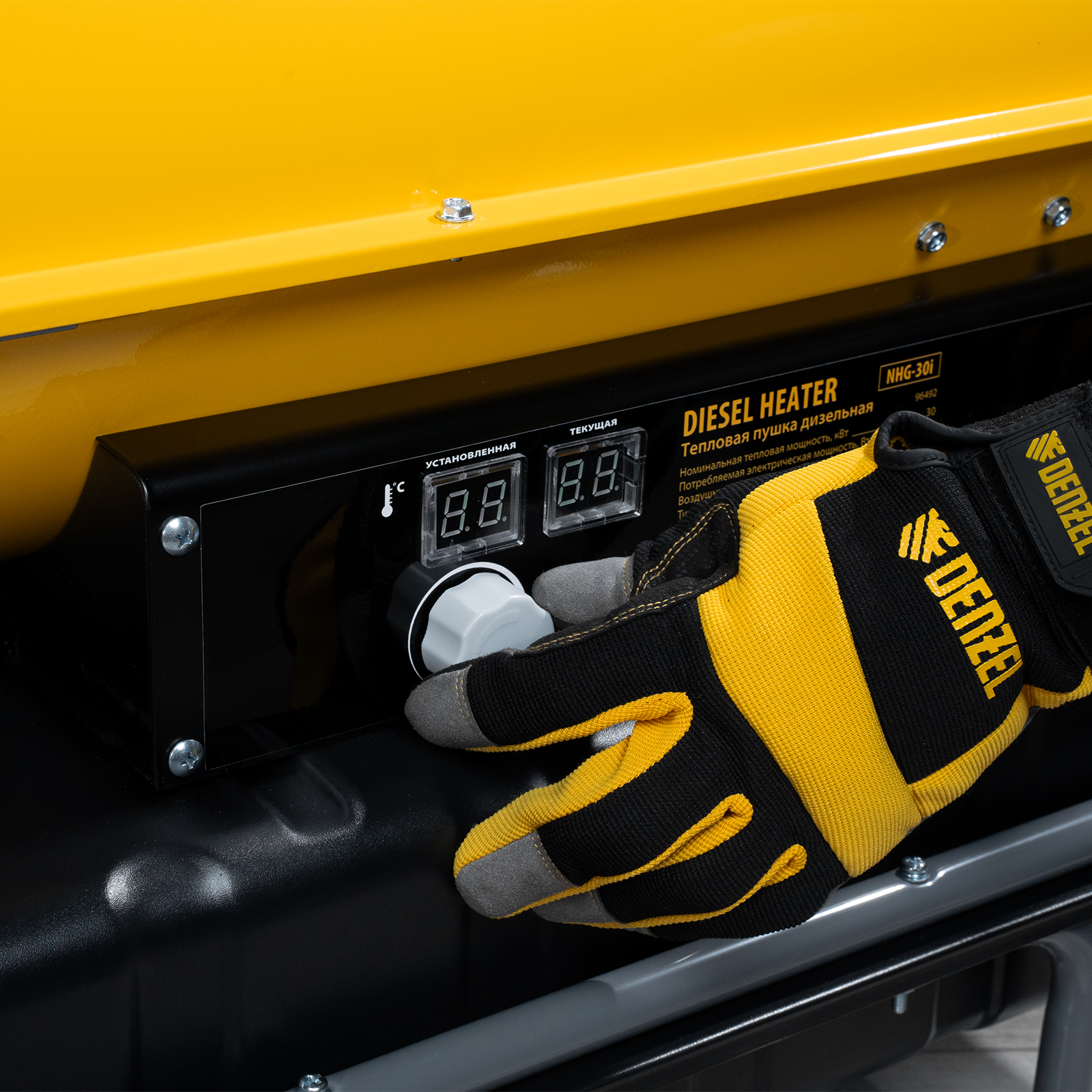 Дизельная тепловая пушка непрямого нагрева DENZEL NHG-30i 96492 с цифровым термостатом обладает тепловой мощностью 30 кВт и генерирует поток теплого воздуха 750 м3/ч. Предназначена для обогрева шатров, палаток, складов, а также технических помещений, ангаров, теплиц и строительных объектов. В работе пушки используется схема непрямого нагрева: при помощи отводного патрубка продукты горения можно полностью вывести за пределы помещения. Такое решение позволяет использовать устройство в присутствии людей.