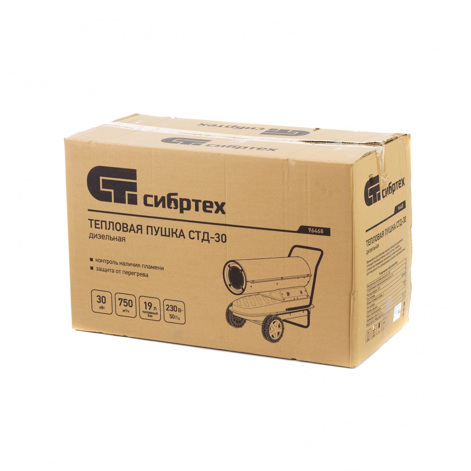 Дизельная тепловая пушка Сибртех СТД-30 96468 мощностью 30 кВт и производительностью 750 куб. м/ч используется для прямого нагрева воздуха в цехах, хранилищах, ангарах, теплицах и других нежилых помещениях. Также ее используют на строительных площадках для просушивания стен, разморозки траншей, подогрева бетона. Пушка позволяет быстро и эффективно обогреть помещение с объемом воздуха до 1000 куб. м.
