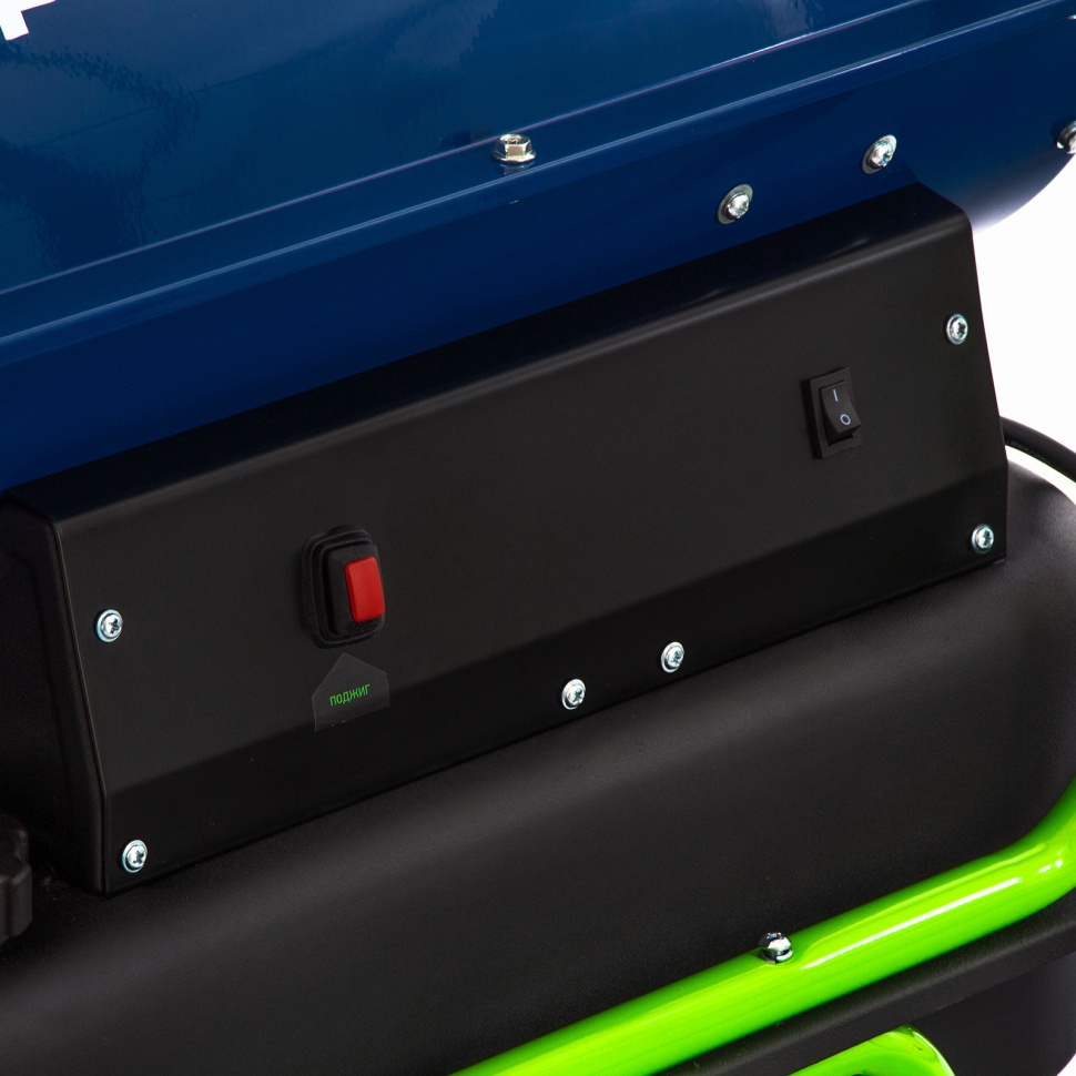 - Удобная транспортировка — благодаря подставке с ручкой и двум большим колесам пушку легко перемещать по рабочей площадке.